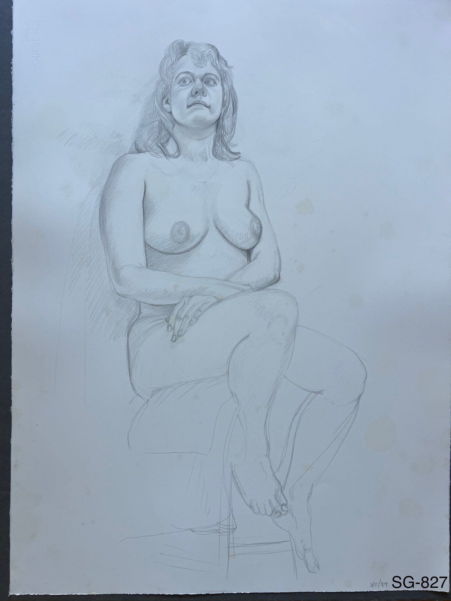 Untitled (Figure drawing, nude female sitting on a stool, back against the wall)