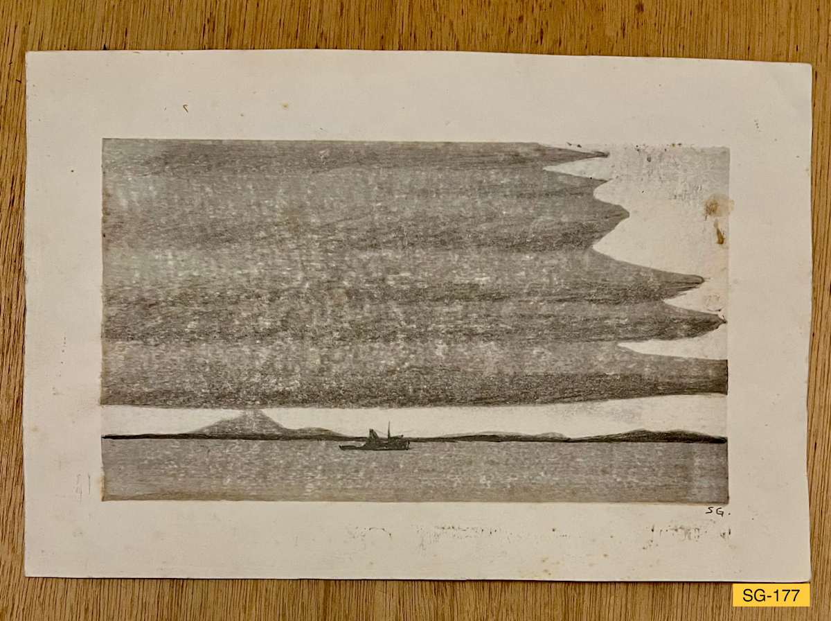 Woodcut with added pencil drawing.
