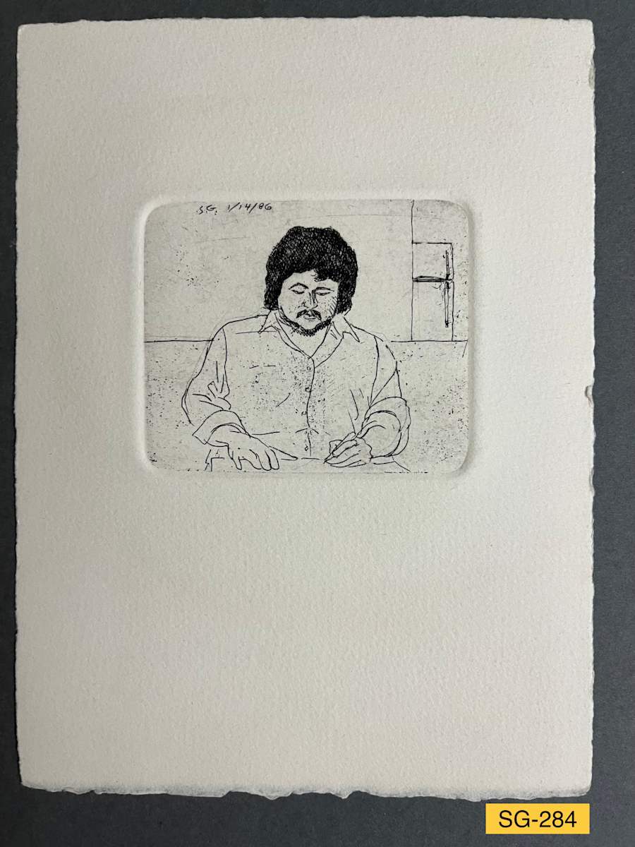 Fred Anderson, Alaska artist, drawing. This etching part of the Suite 101 series.