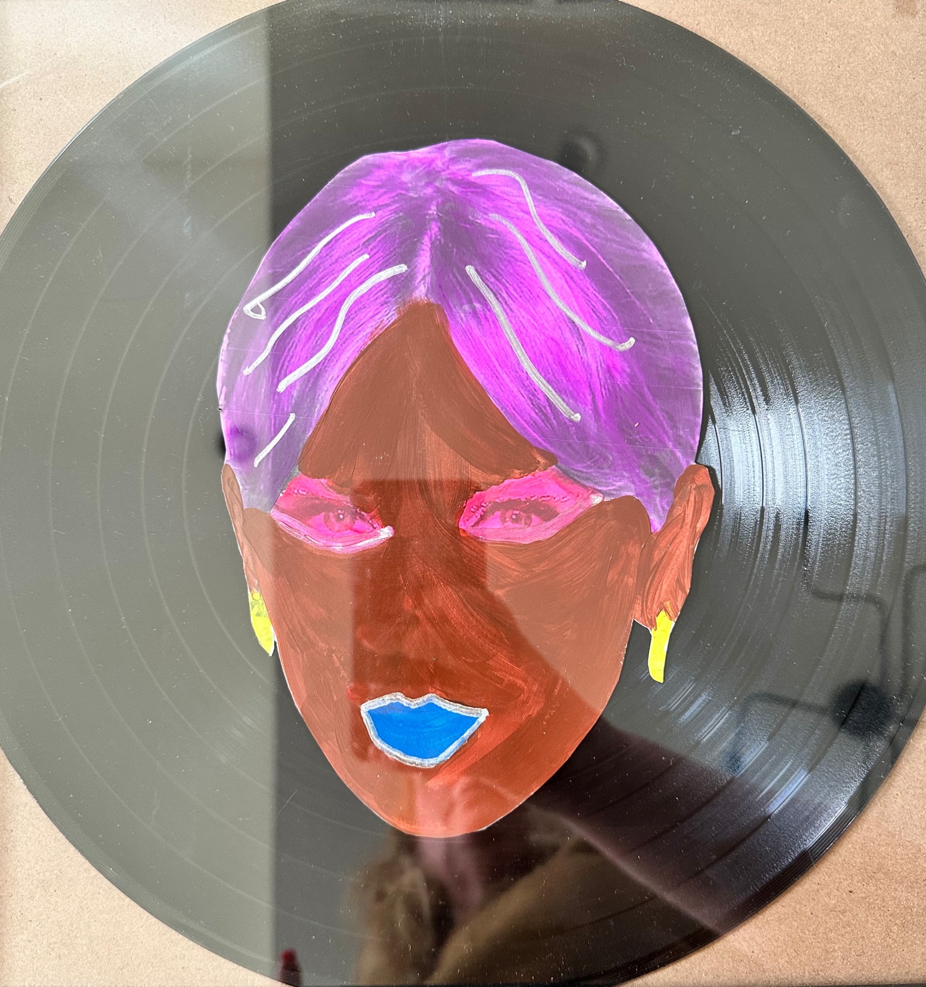 The “destruction of the sacred” by gluing art onto vinyl albums (that were sacred in Stafford’s childhood home) gave her the same feelings of guilt as if she’d desecrated the American flag ala Mapplethorpe or Dread Scott. And finally the glitter paint pen work evokes memories of 80s kids with stickers and markers drawing in a yearbook. The choice of Taylor Swift in the place of Marilyn Monroe was deliberate as Taylor has referenced herself as a product that she wants 100% control of the marketing and profit from.
