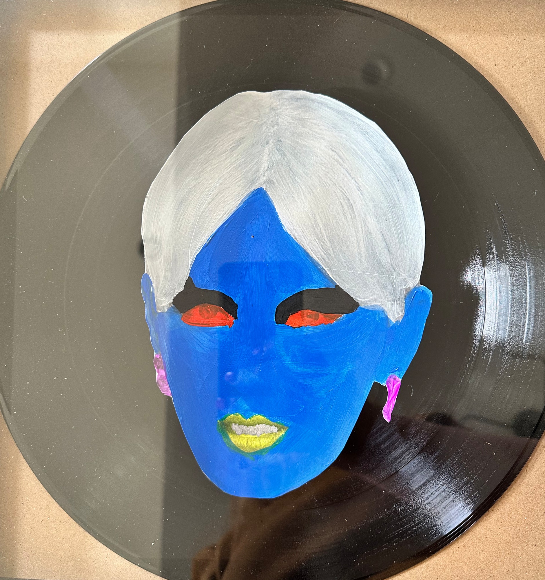 The “destruction of the sacred” by gluing art onto vinyl albums (that were sacred in Stafford’s childhood home) gave her the same feelings of guilt as if she’d desecrated the American flag ala Mapplethorpe or Dread Scott. And finally the glitter paint pen work evokes memories of 80s kids with stickers and markers drawing in a yearbook. The choice of Taylor Swift in the place of Marilyn Monroe was deliberate as Taylor has referenced herself as a product that she wants 100% control of the marketing and profit from.