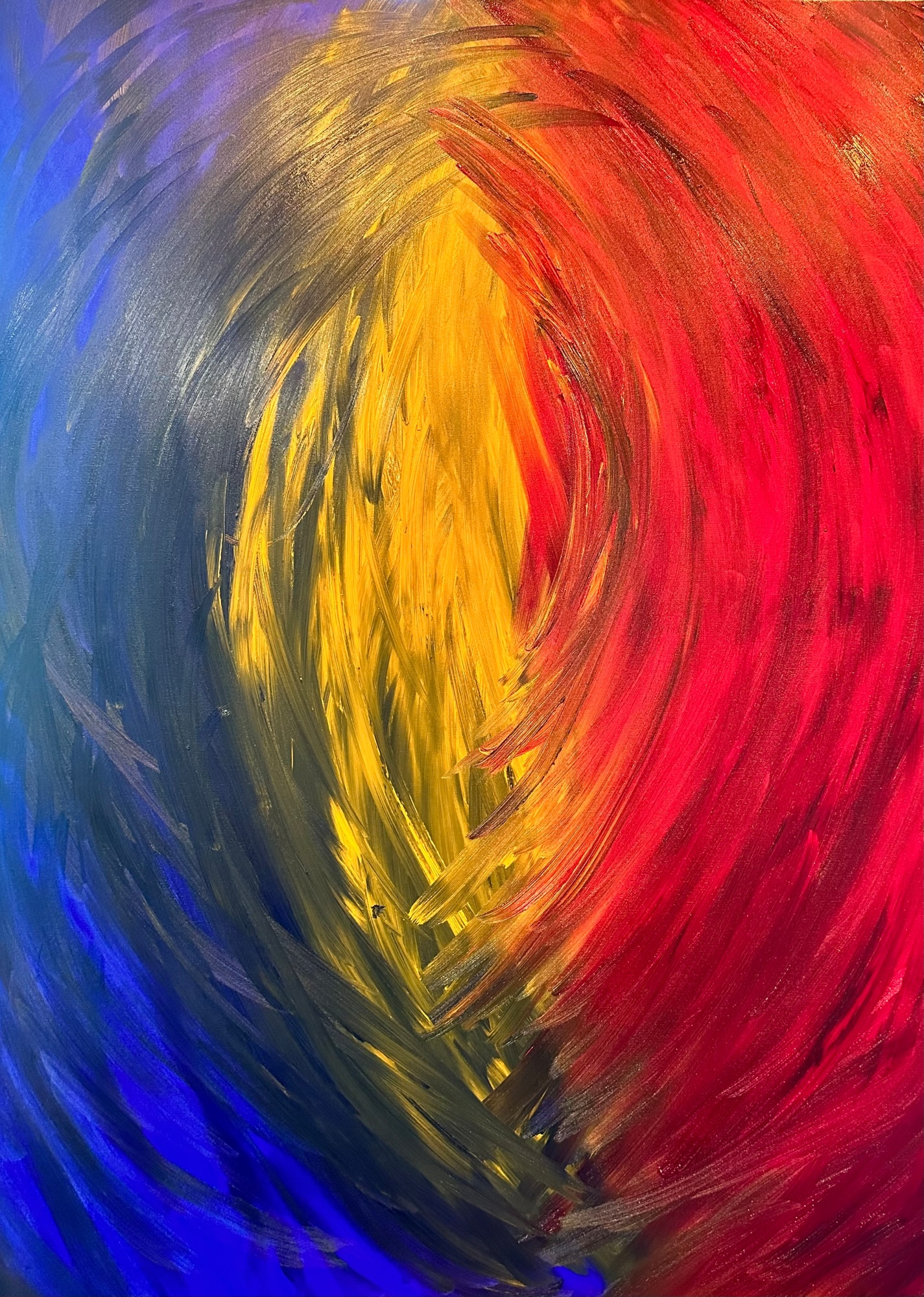 April 4, 2024 - After I had slashed the painting to represent the flaws and lies I had lived for, and then began to repair my identity. The scars remain. The memories sustain. And the painting has become mixed media to express what was and what has become, leaving space for what will be.