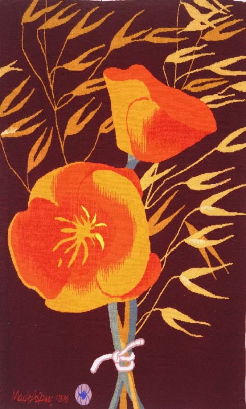 Mark Adams, California Poppies, 1976, tapestry (handwoven wool), 55.5 x 38.5 inches, Stanford Children's Health. Donated by DeeDee McMurtry.