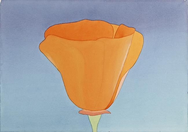 Mark Adams, California Poppy, 1981, watercolor, 24 x 29.5 inches, Stanford Children's Health. Donated by the Adams & Van Hoesen-Adams Trust. Large watercolor of a bright orange California Poppy.