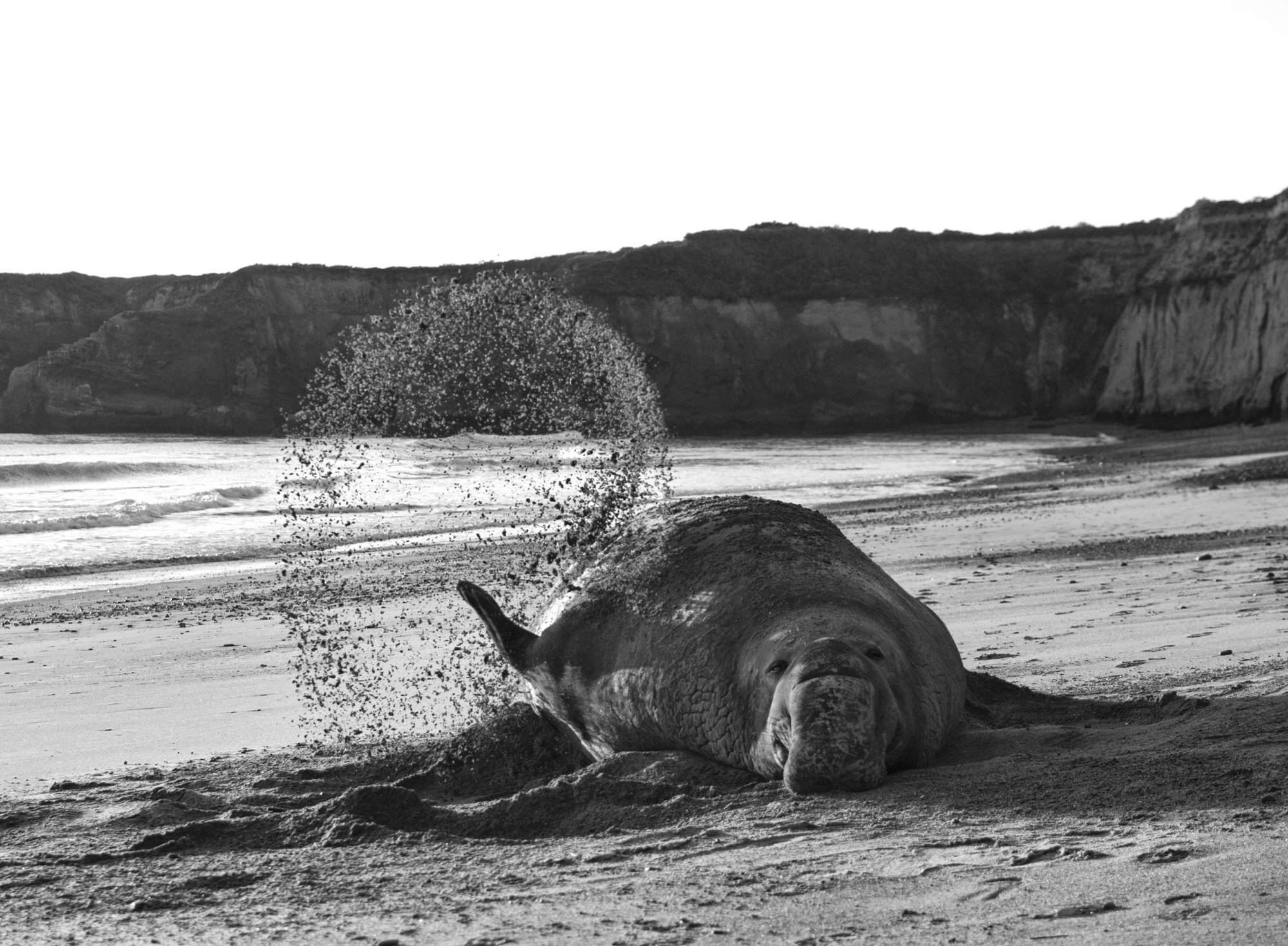 Teddy Miller, We Love Sharing Our State with You - Skyline to Sea, 2017, black and white photograph, 11 x 14 inches, Lucile Packard Children's Hospital at Stanford, Main. Donated by Shawn and Brook Byers in Honor of POST Photographer Teddy Miller. This photograph of an elephant seal is part of a larger series.