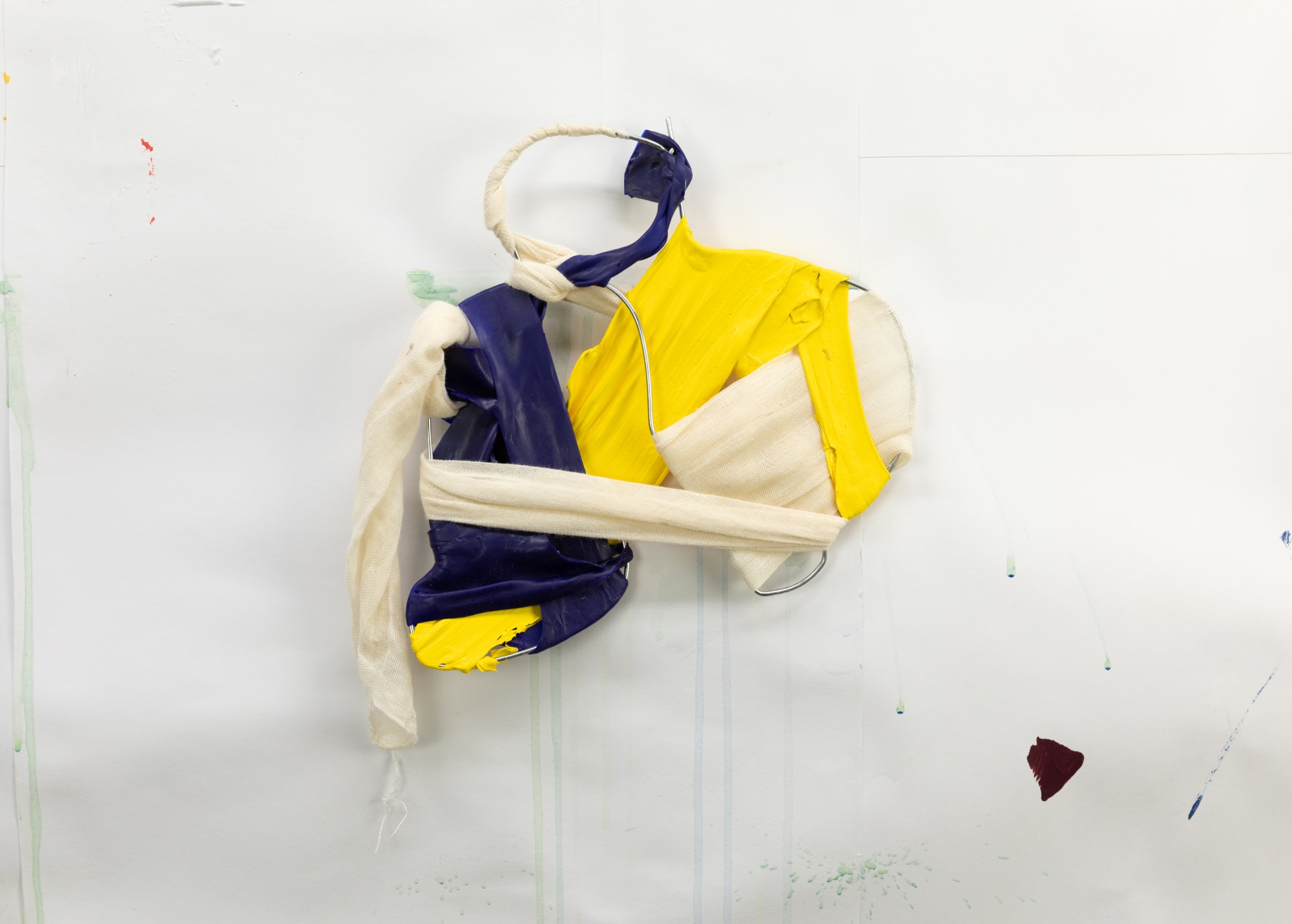 I consider this work as a sculptural painting, to be hung in front of a wall or suspended freely in space. As a painting it relates to a traditional painting methodology of using stretcher, canvas and paint. As a sculpture is asks for moving around, to make multiple sides visible and to overcome a sense of flatness.