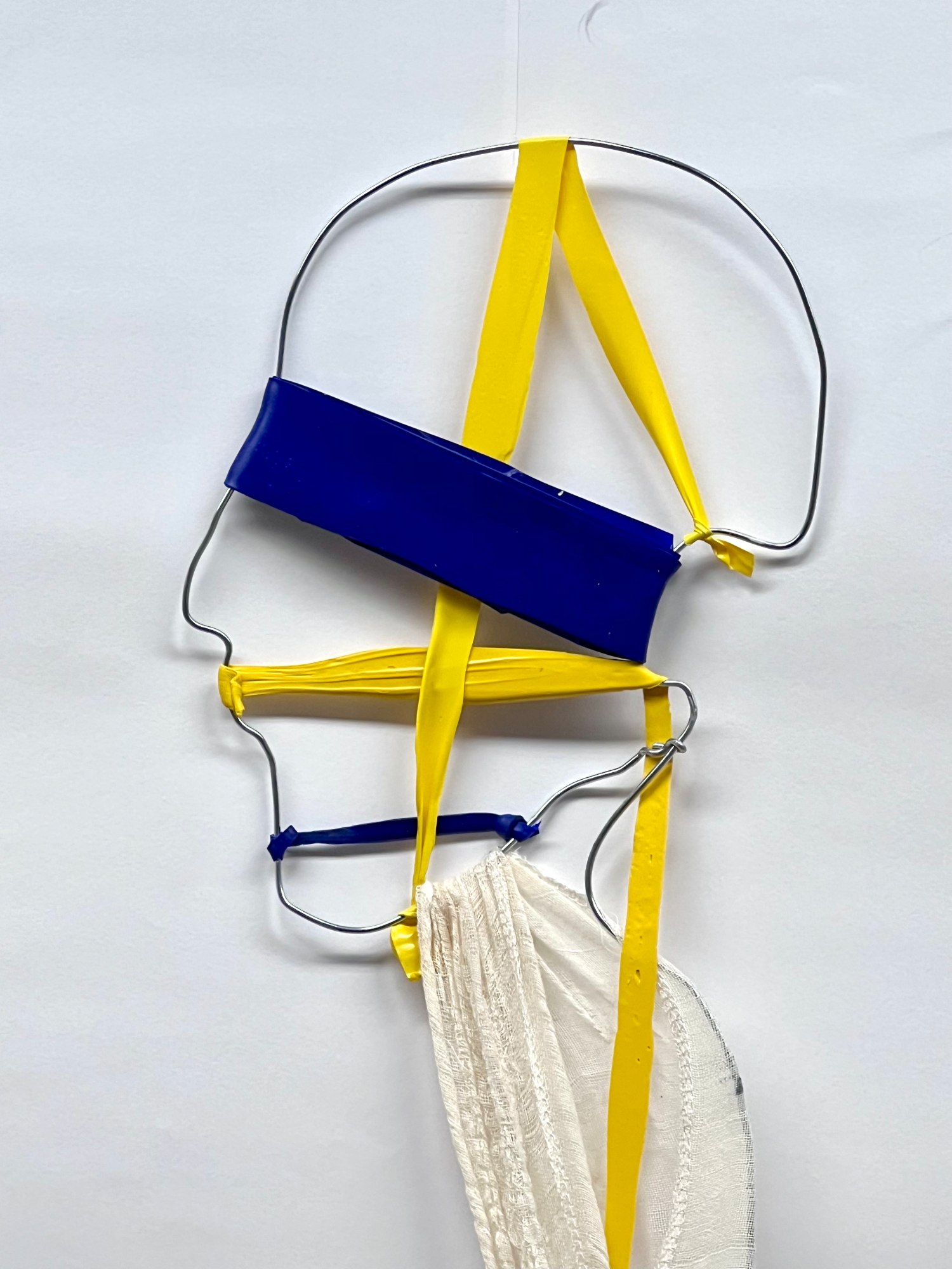 I consider this work a sculptural painting, to be hung in front of a wall or suspended freely in space. As a painting it relates to a traditional painting methodology of using stretcher, canvas and paint. As a sculpture it asks for moving around, to make multiple sides visible and to overcome a sense of flatness.