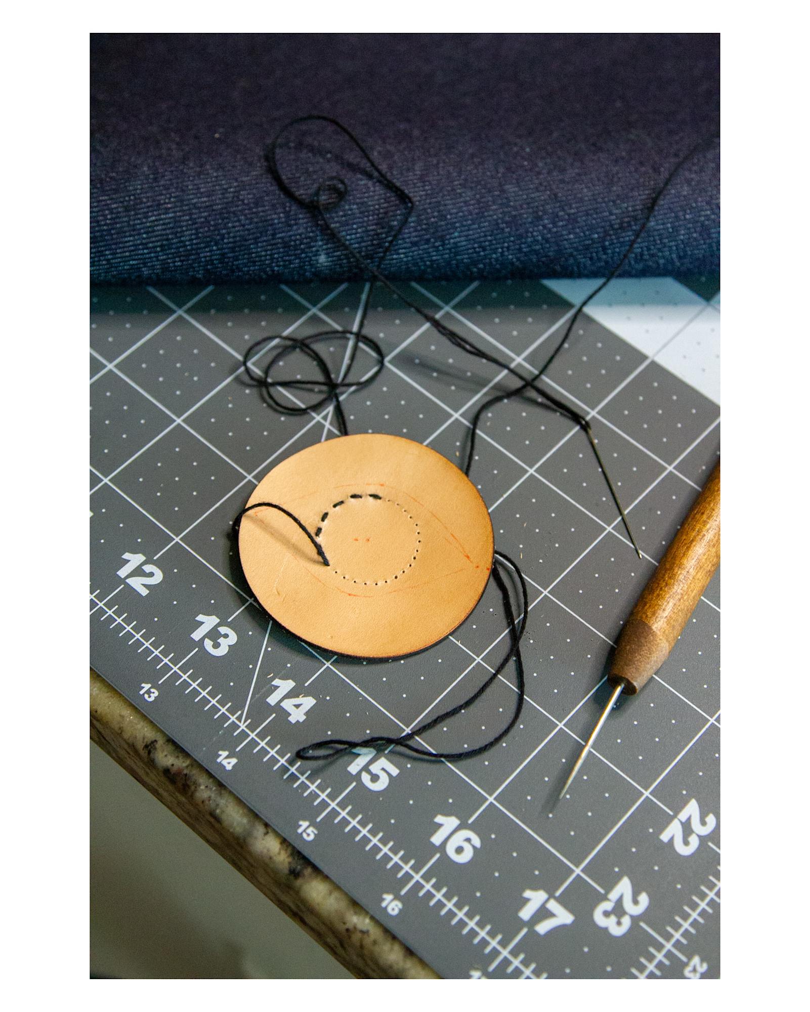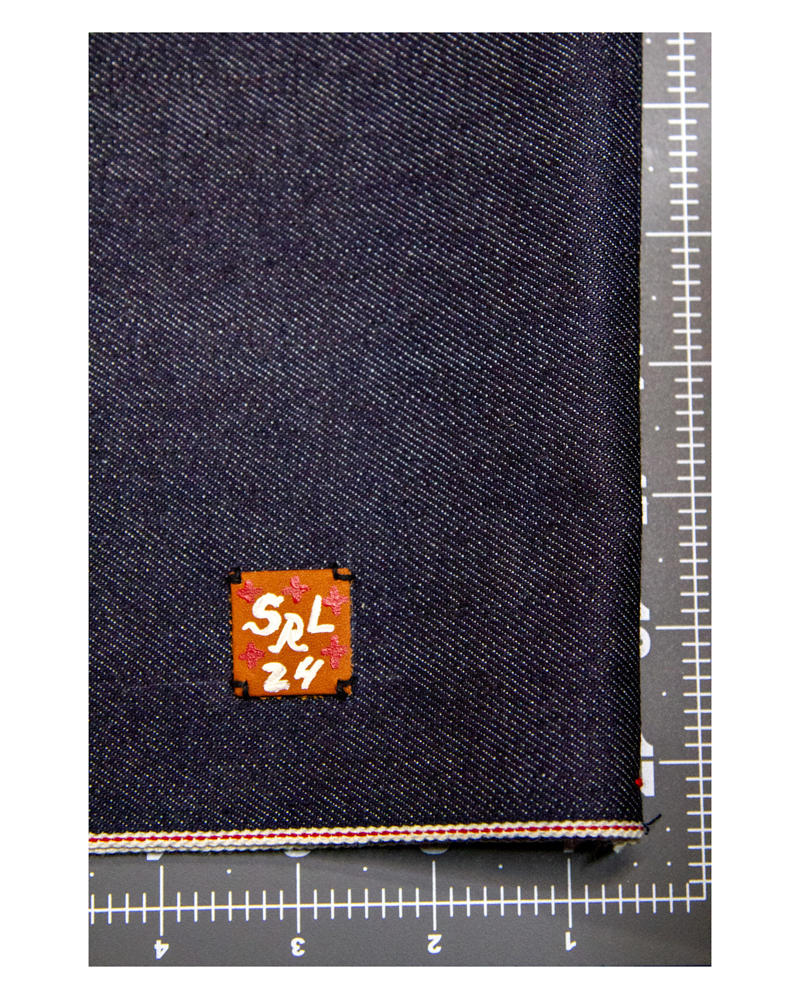 - 10 oz. Japanese Selvedge Denim, Leather, Cotton Thread, Polyester Thread, Acrylic Paint