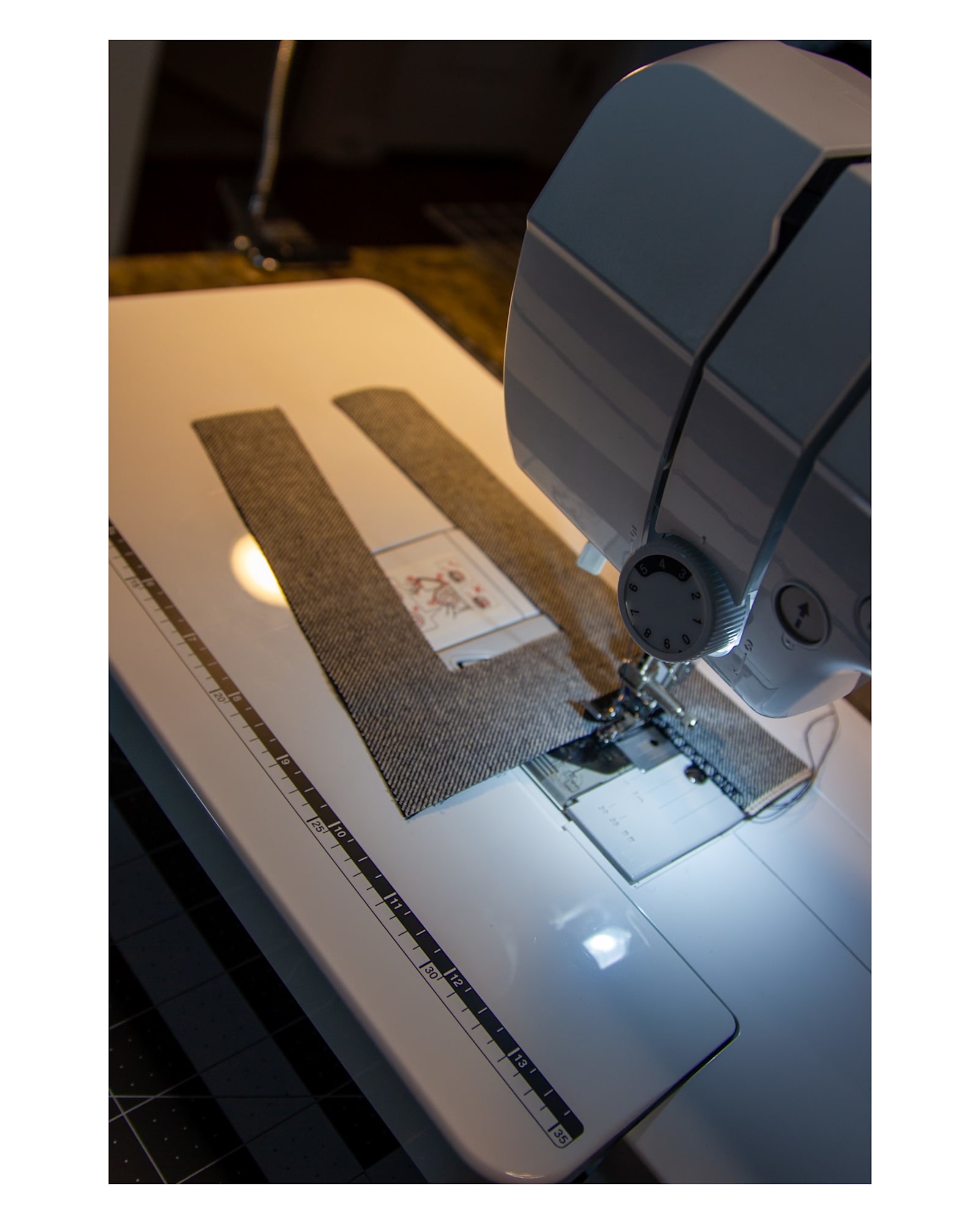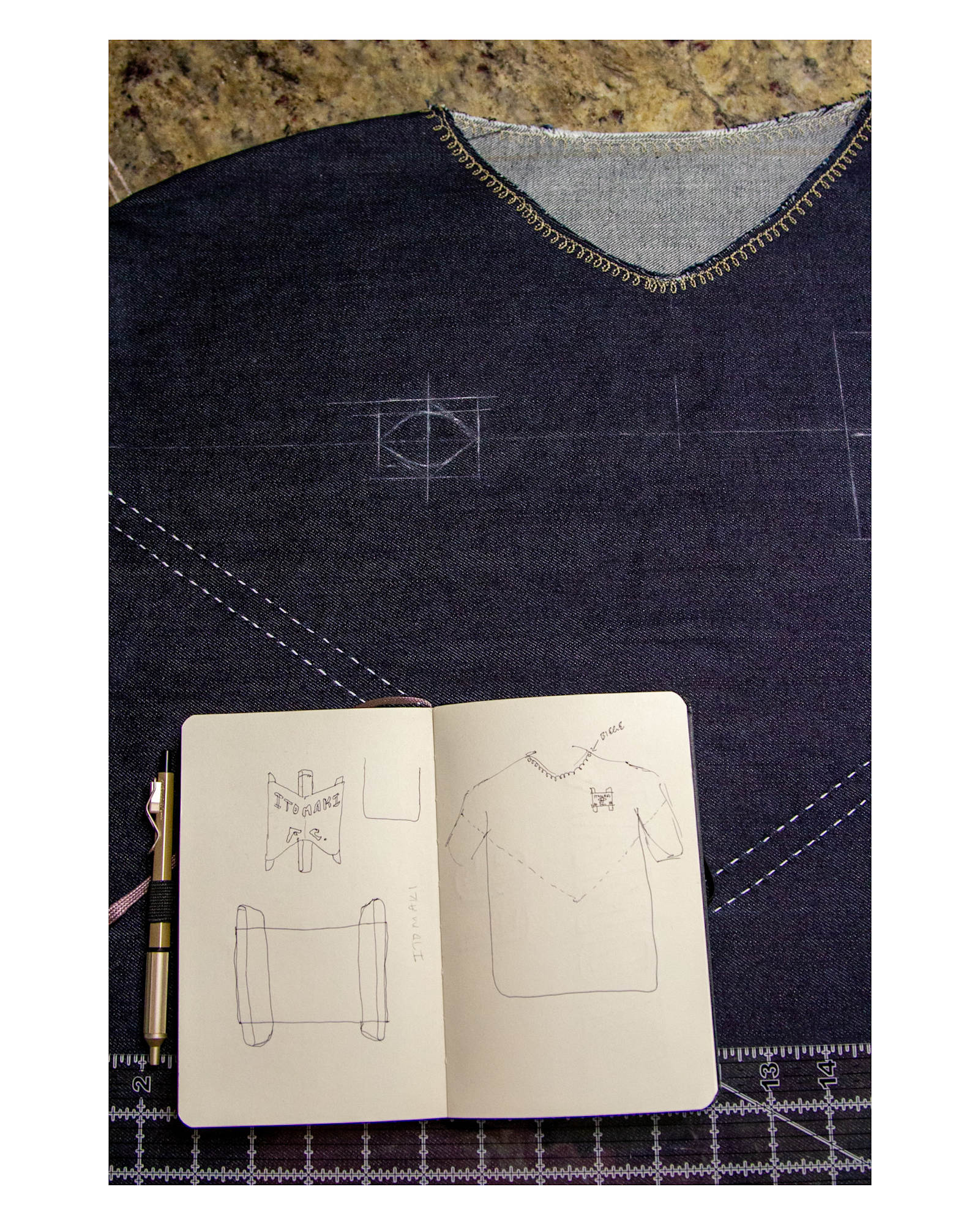 10 oz. Japanese Selvedge Denim, Cotton, Leather, Cotton Thread, Polyester Thread, Acrylic Paint