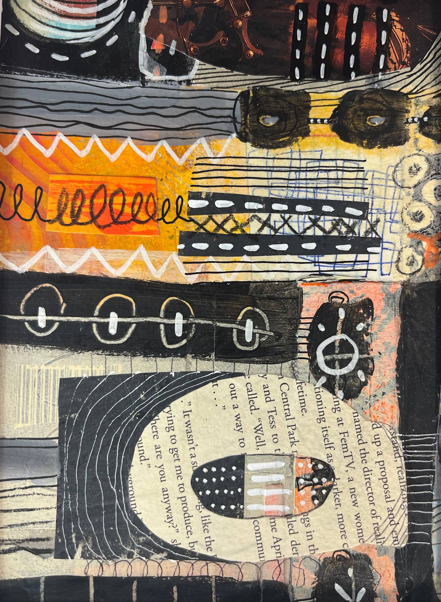 Original collage painting on paper. Comes protected with archival quality, acid free mat and backing board, encased in an acetate sleeve. Ready to frame.