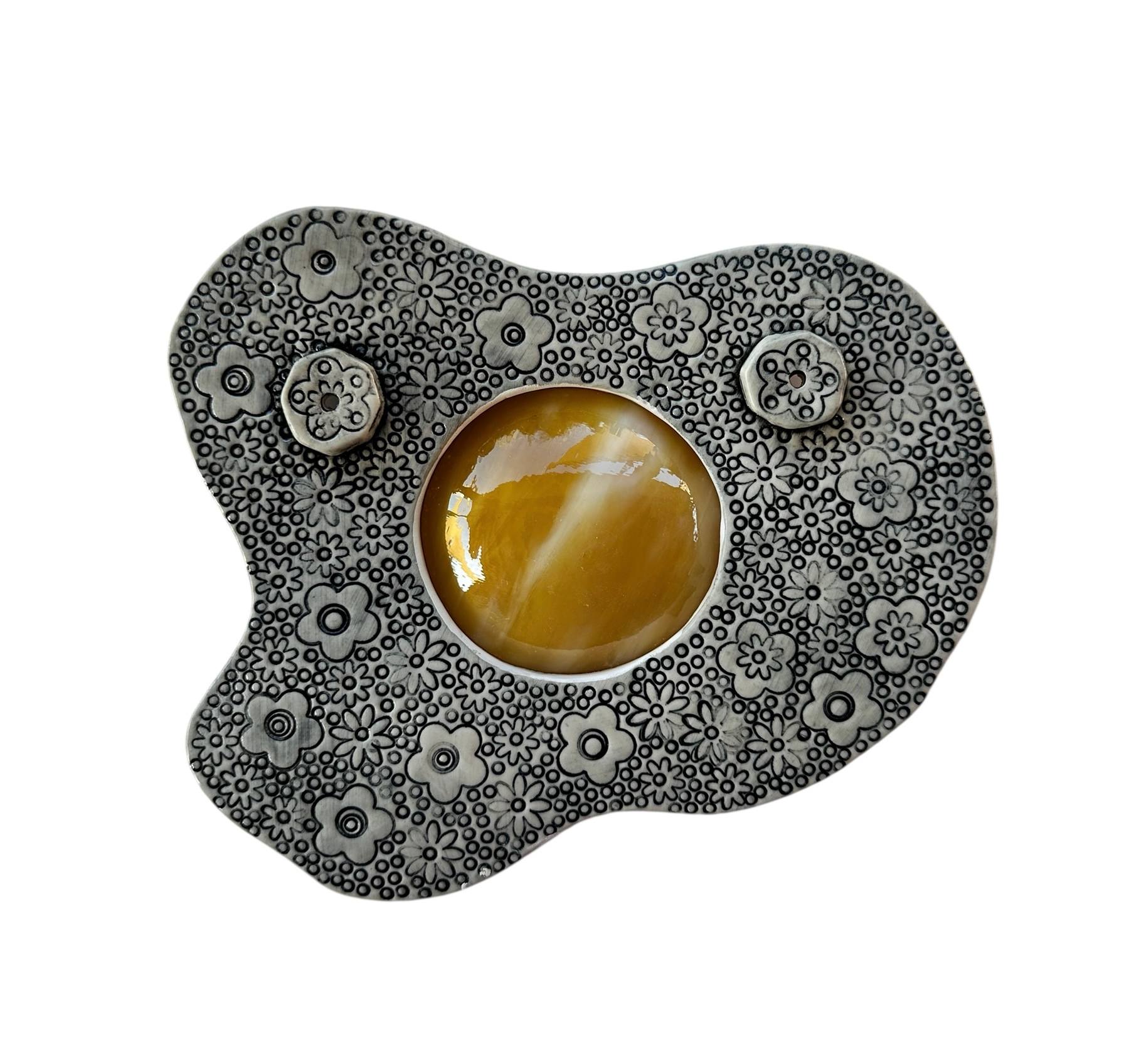 Hand stamped and glazed ceramic with slumped glass