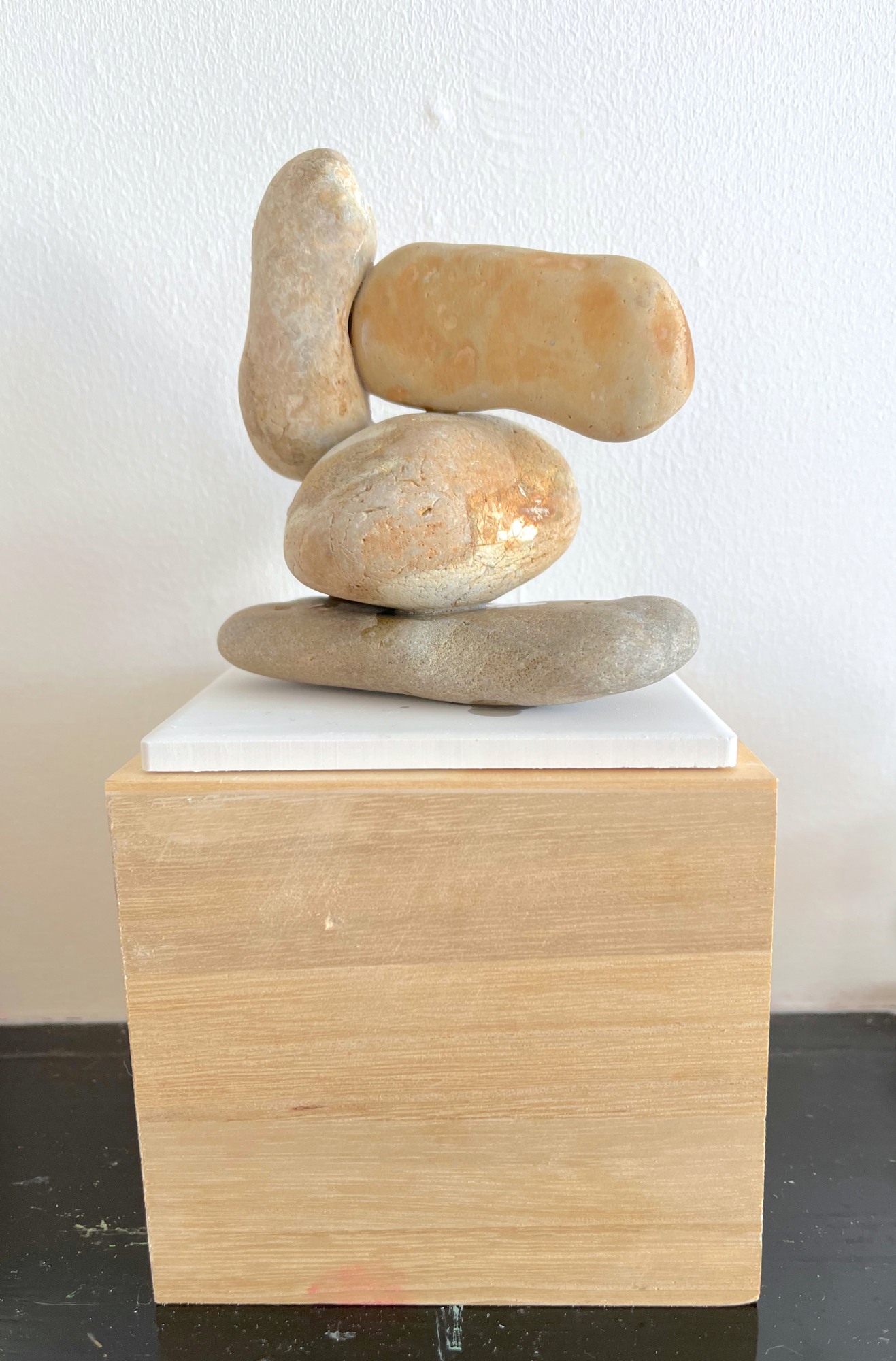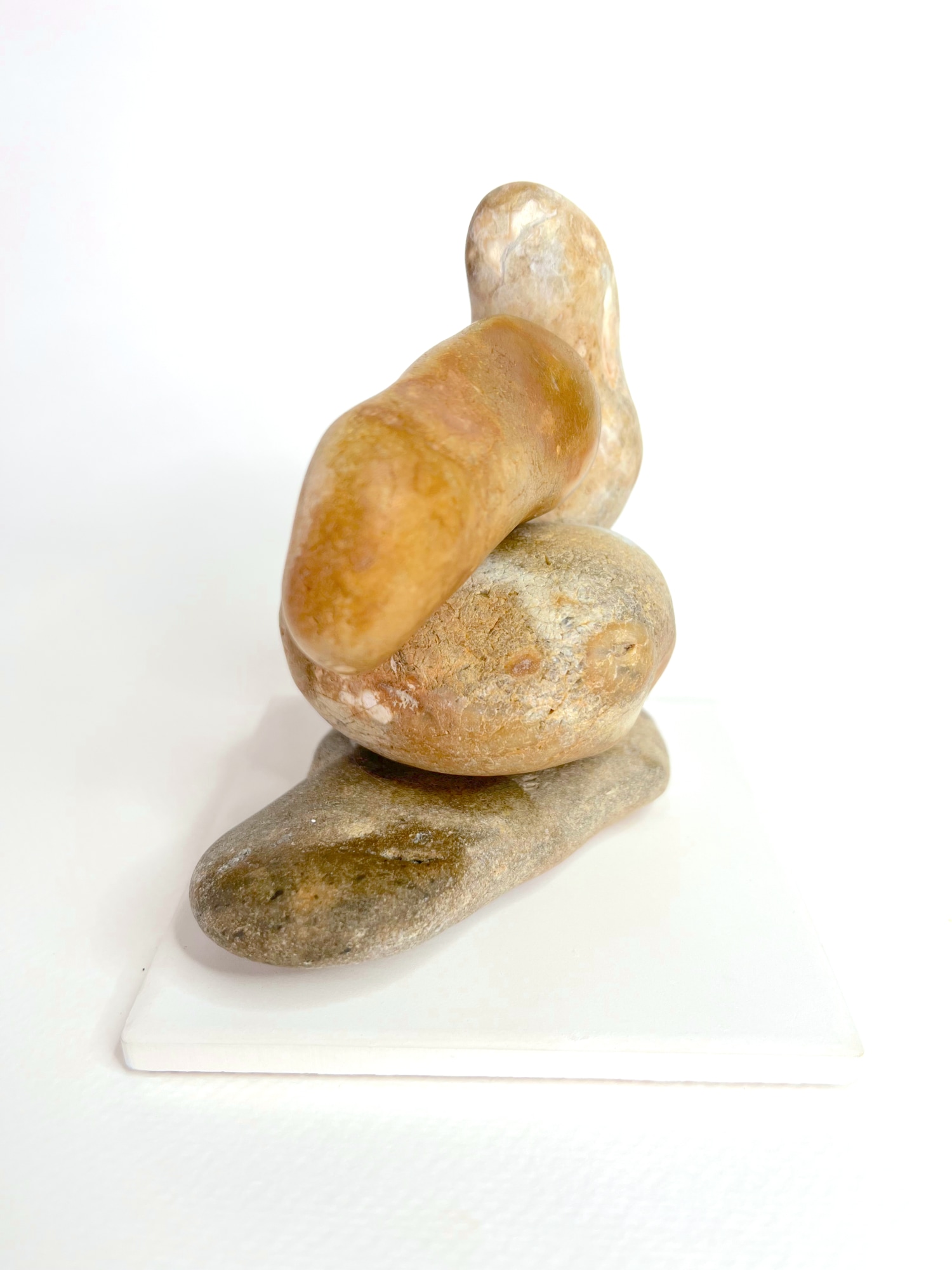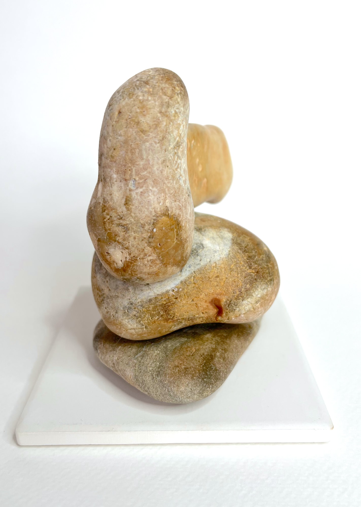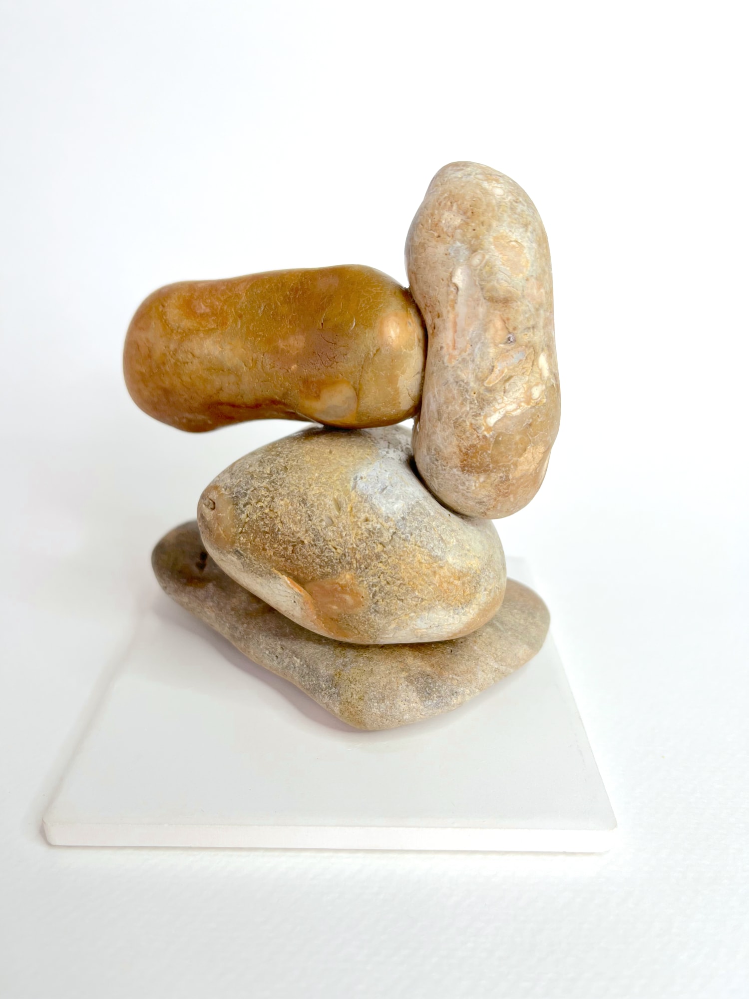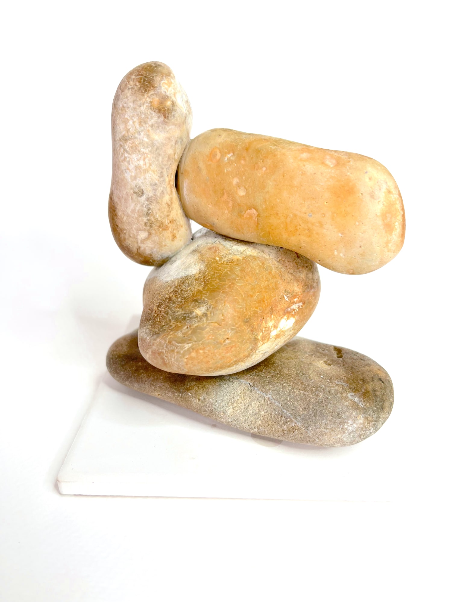 Introducing “Coastal Balance” – a serene mini sculpture featuring four similarly toned pebbles nestled perfectly into each other. The gentle, light tones of the stones represent the soft hues of coastal landscapes – the warm sands, sunlit cliffs, and the peaceful meeting of land and sea.