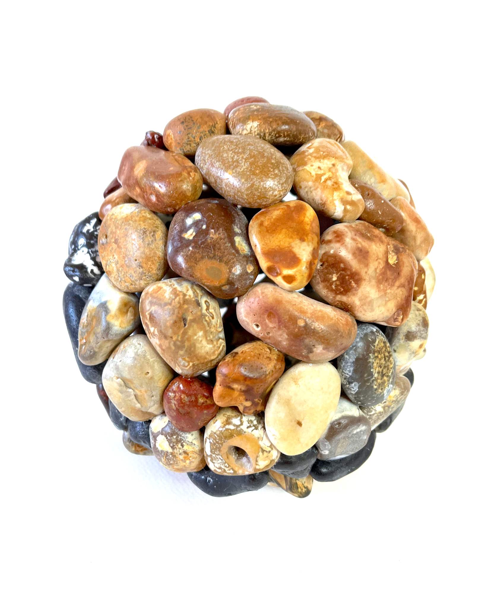 Composed of basalt, chert, jasper, and other stones imbued with grounding energy, its form transcends its materials. The smooth, rounded contours resonate with the enduring power of the ancient earth, invoking the sacred role of stone in early human civilisation. These natural elements, long employed in the construction of shelters and places of refuge, embody resilience—a profound, unspoken testament to survival through millennia.
