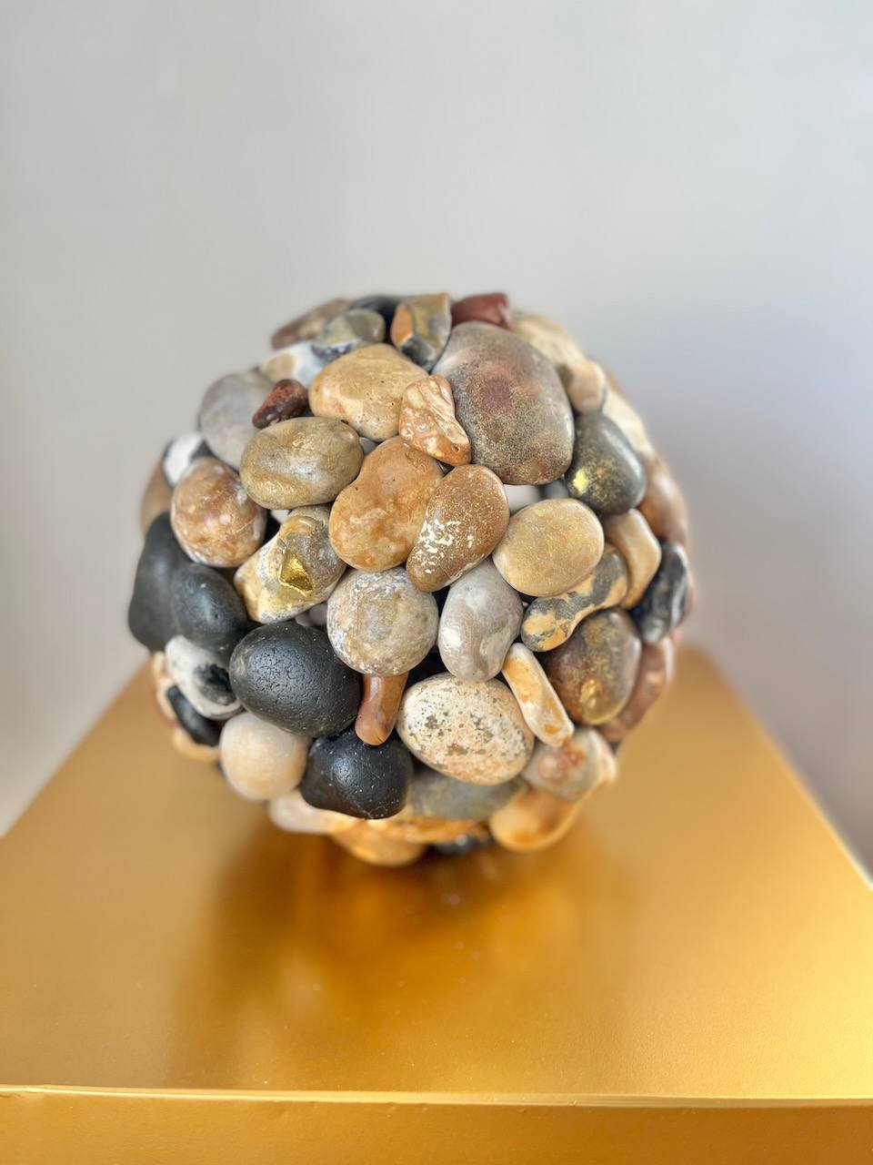 Forged from the meeting of fire, stone, and light, Starforge embodies the alchemy of creation itself. Its dark volcanic surfaces hold the memory of molten origins, while agates and quartzite shimmer like captured constellations. Flecks of gold glint across the form — fragments of illumination caught within the ancient body of the earth.