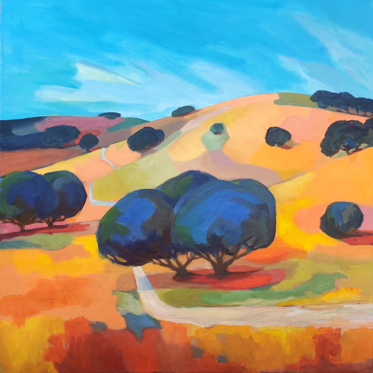 Foothill Oaks  Image: Broad boughs of spreading oaks soak up the afternoon sun and bring grateful shade as you step off the trail for a moment of rest.   Misteltoe hangs above, mystical evergreen through the winter ahead, but today barely seen among the leaves.  Pause for breath, and recover to reach new sensations ahead on the trail.
