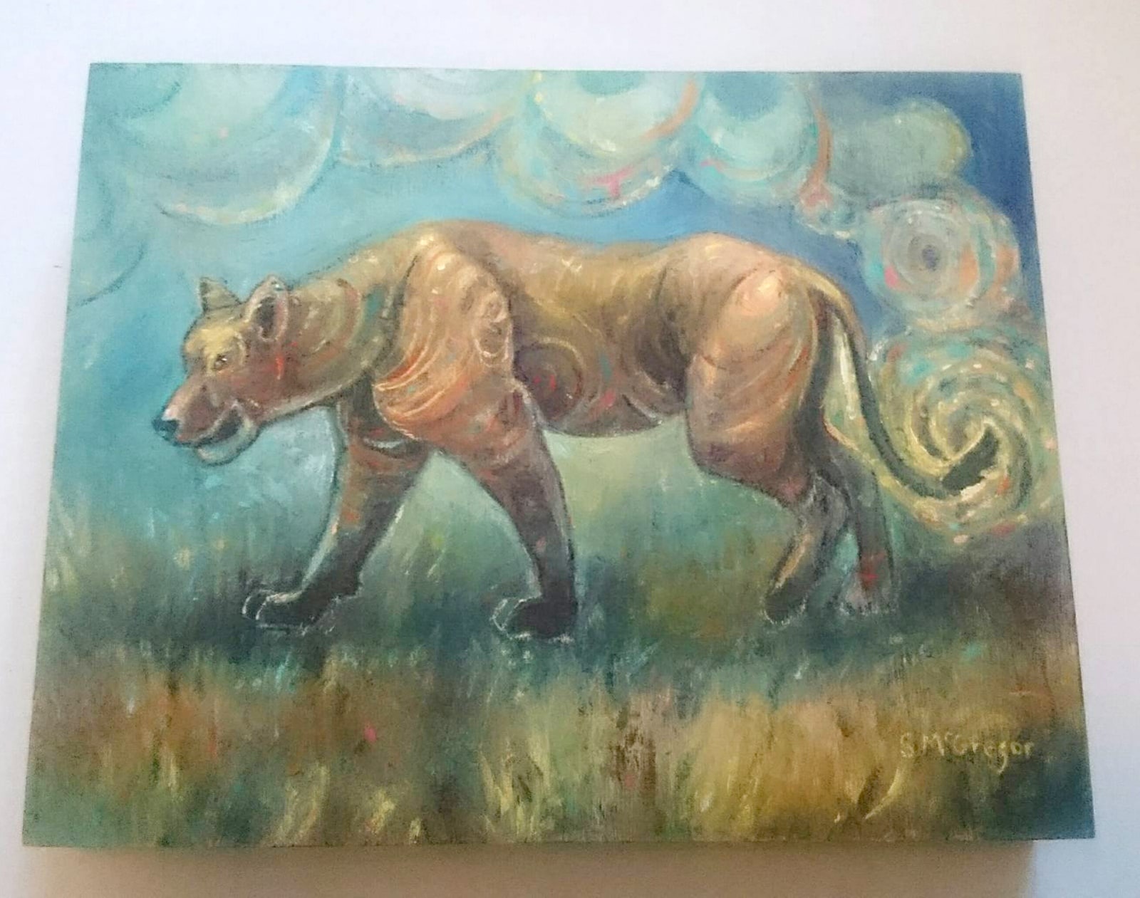 A lioness walks slowly, confident in her abilities to provide for herself and others.