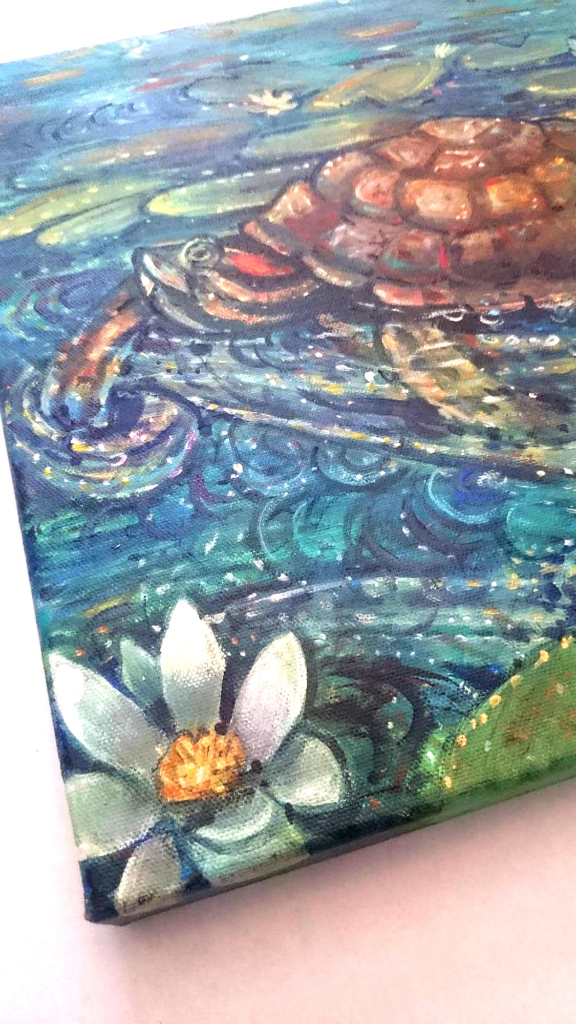 I painted this turtle to represent peace and transformation. I wrote a blog post, showing the changes that this painting went through.