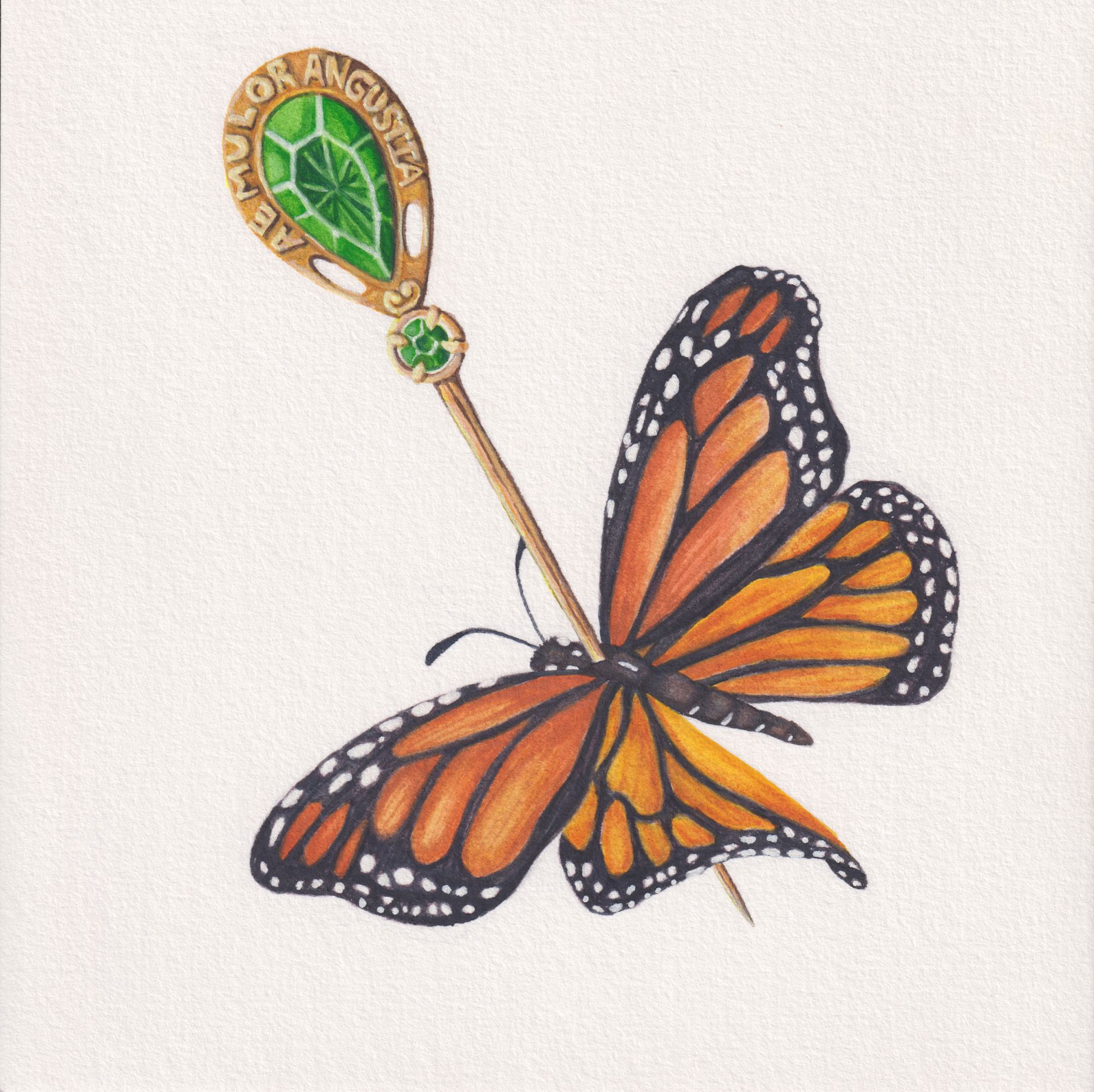This piece is based on the deadly sin of envy. It features the Latin phrase in gold “Pang of Jealousy”. A feeling even the best of us can relate to.