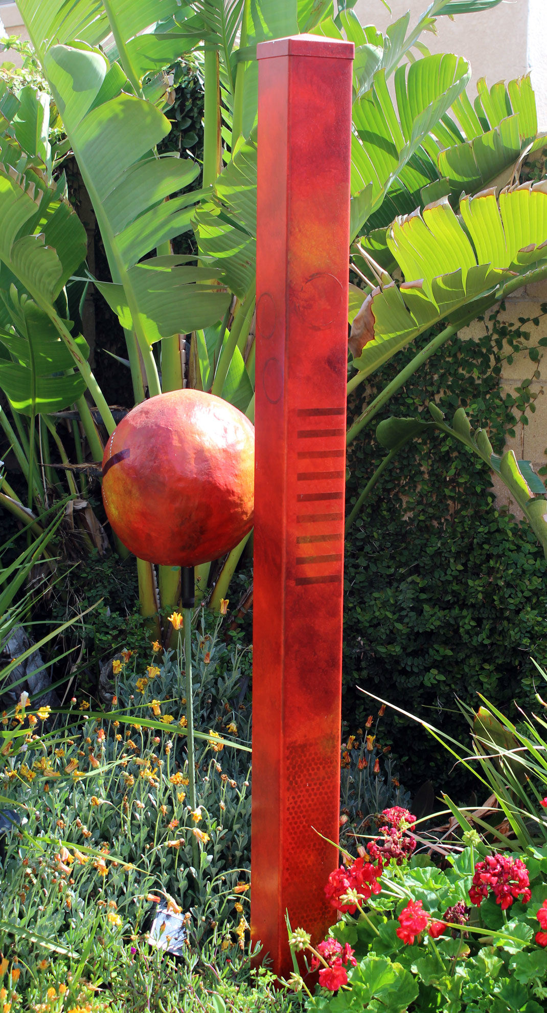 Four sided outdoor pylon / sculpture. Acrylic on vinyl.