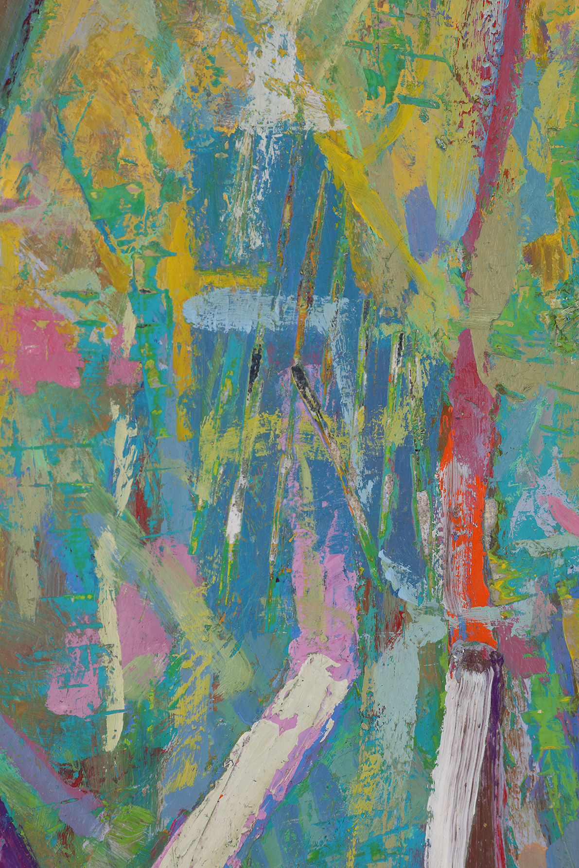 Original abstract landscape oil painting by Stevenjohn McHugh. Mixed media oil, graphite, charcoal and cold wax on Arches oil paper glued on wood panel with PH balance glue. Side of wood cradle (solid wood) is clear vanished Painting is a diptych (two panels). Signed on front and back. Price does not includes shipping and will be determined at point of purchase.