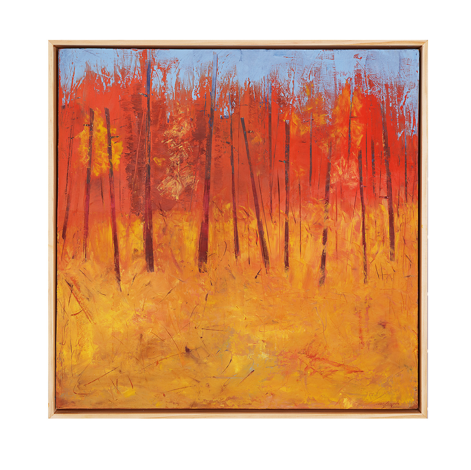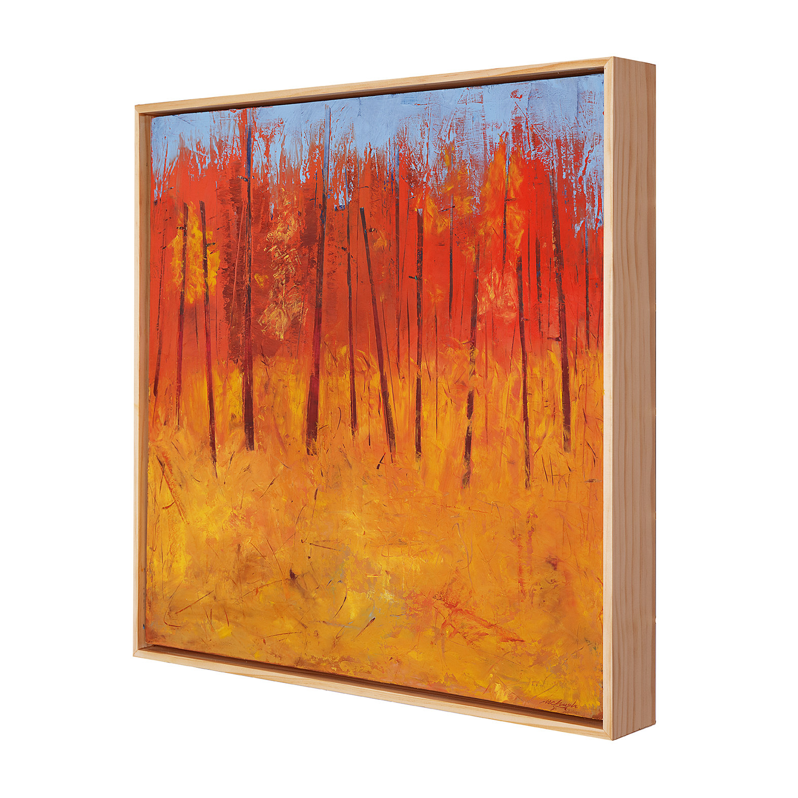 Original abstract landscape oil painting by Stevenjohn McHugh. Mixed media oil, graphite, charcoal and cold wax on Arches oil paper glued on wood panel with PH balance glue. Side of wood cradle (solid wood) is painted black. Signed on front and back.