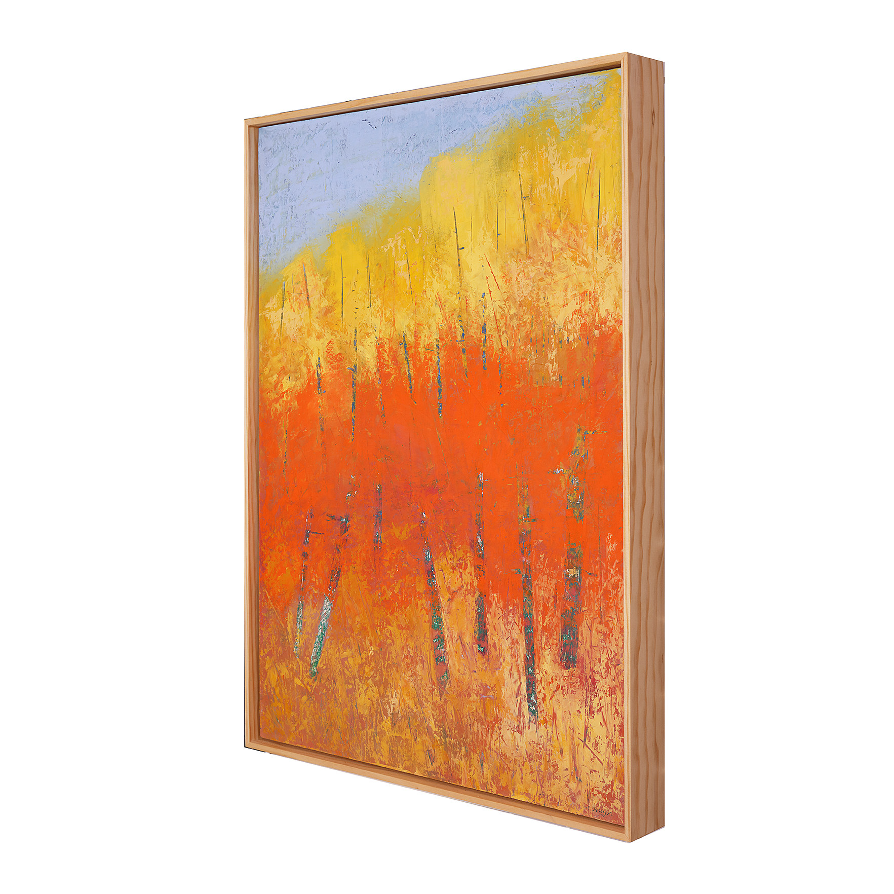 Original abstract Landscape oil painting by Stevenjohn McHugh. Mixed media oil, graphite, spray paint and cold wax on paper glued to wood panel with PH balanced glue. Side of wood cradle (solid wood) is clear varnished. Signed on front and back. .