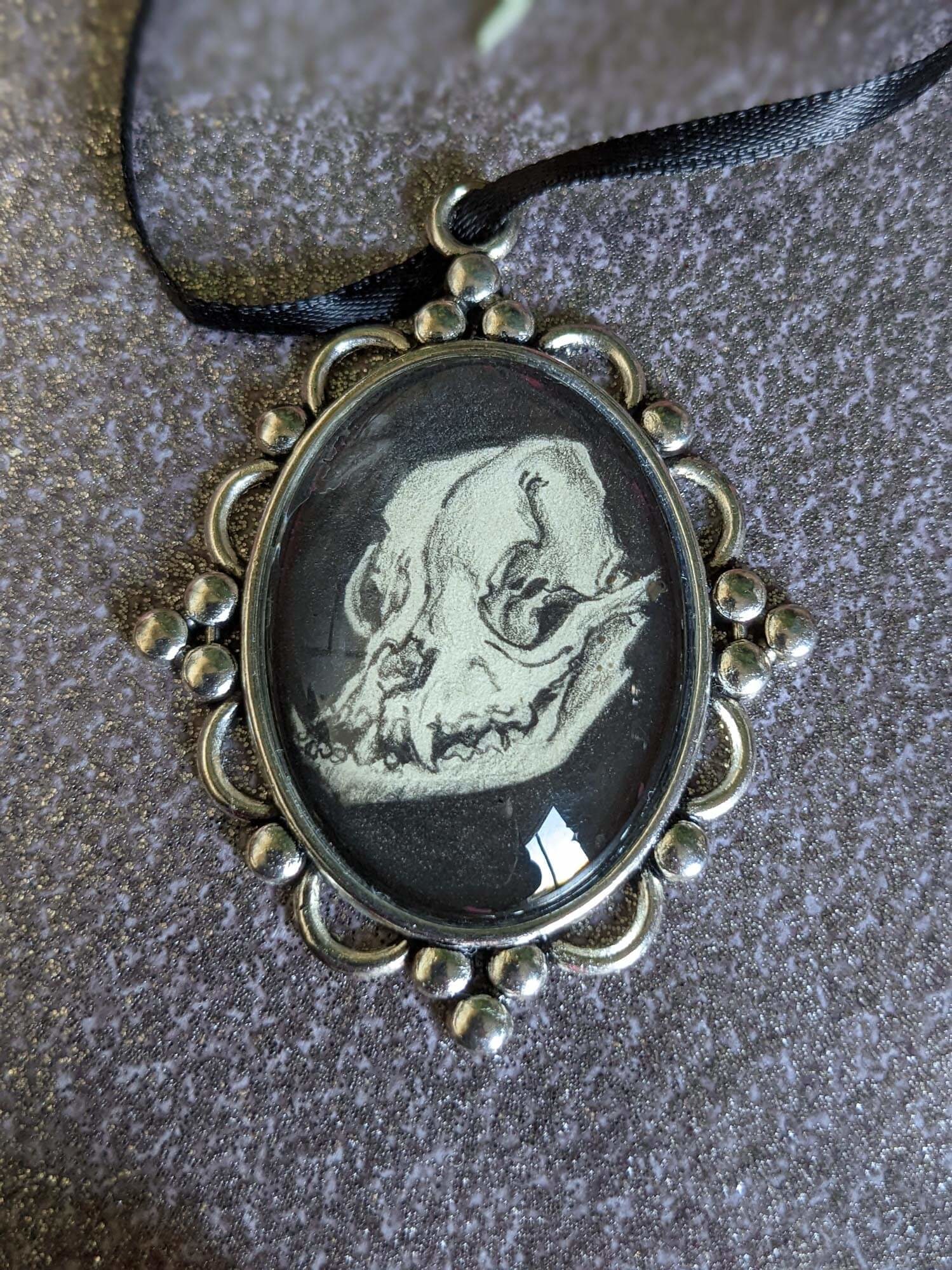 Original hand-drawn graphite on paper, sealed into a silver 40x30mm glass & zinc oval frame.