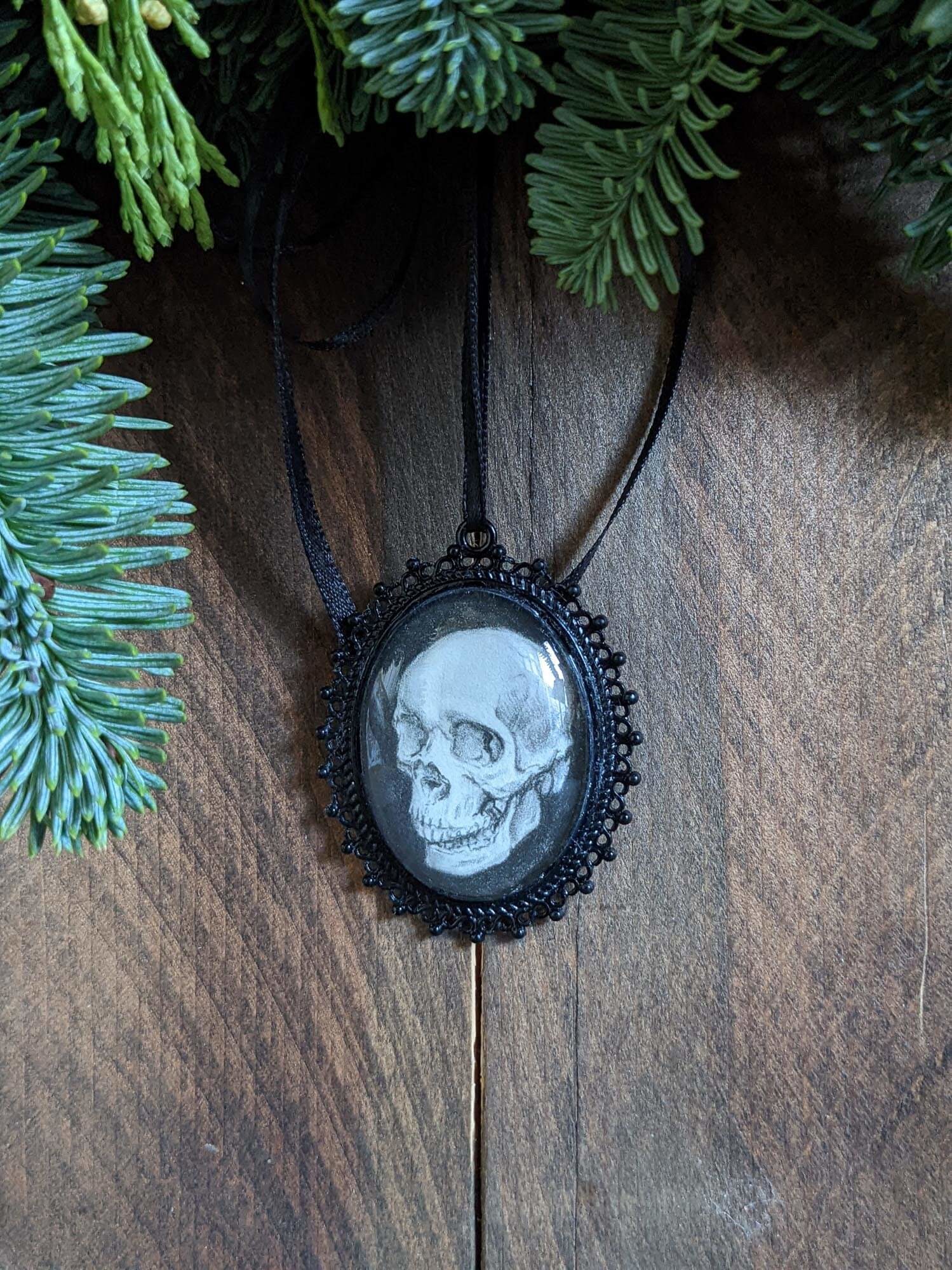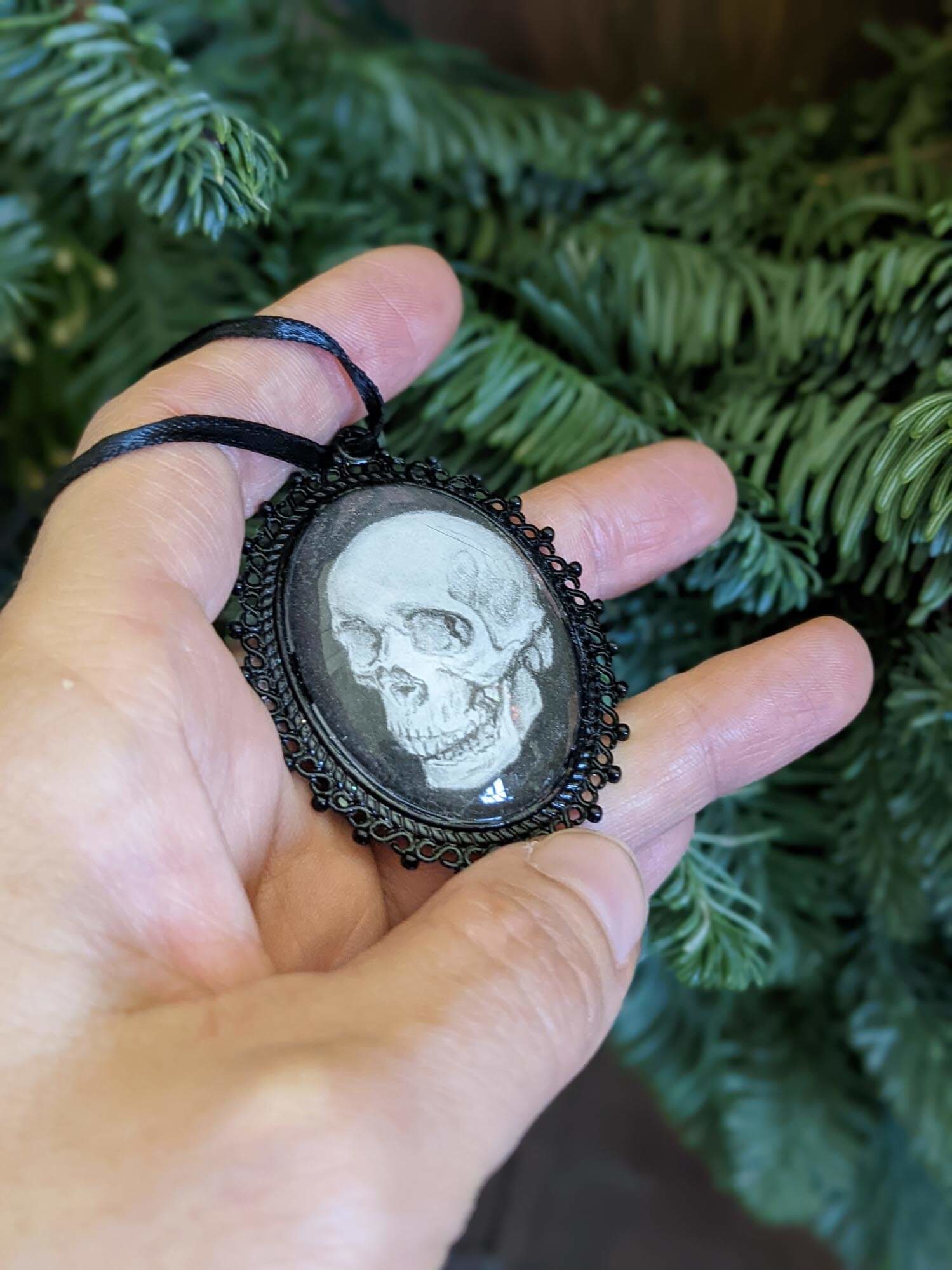 Human Skull 3 Quarter Drawing Glass Ornament.