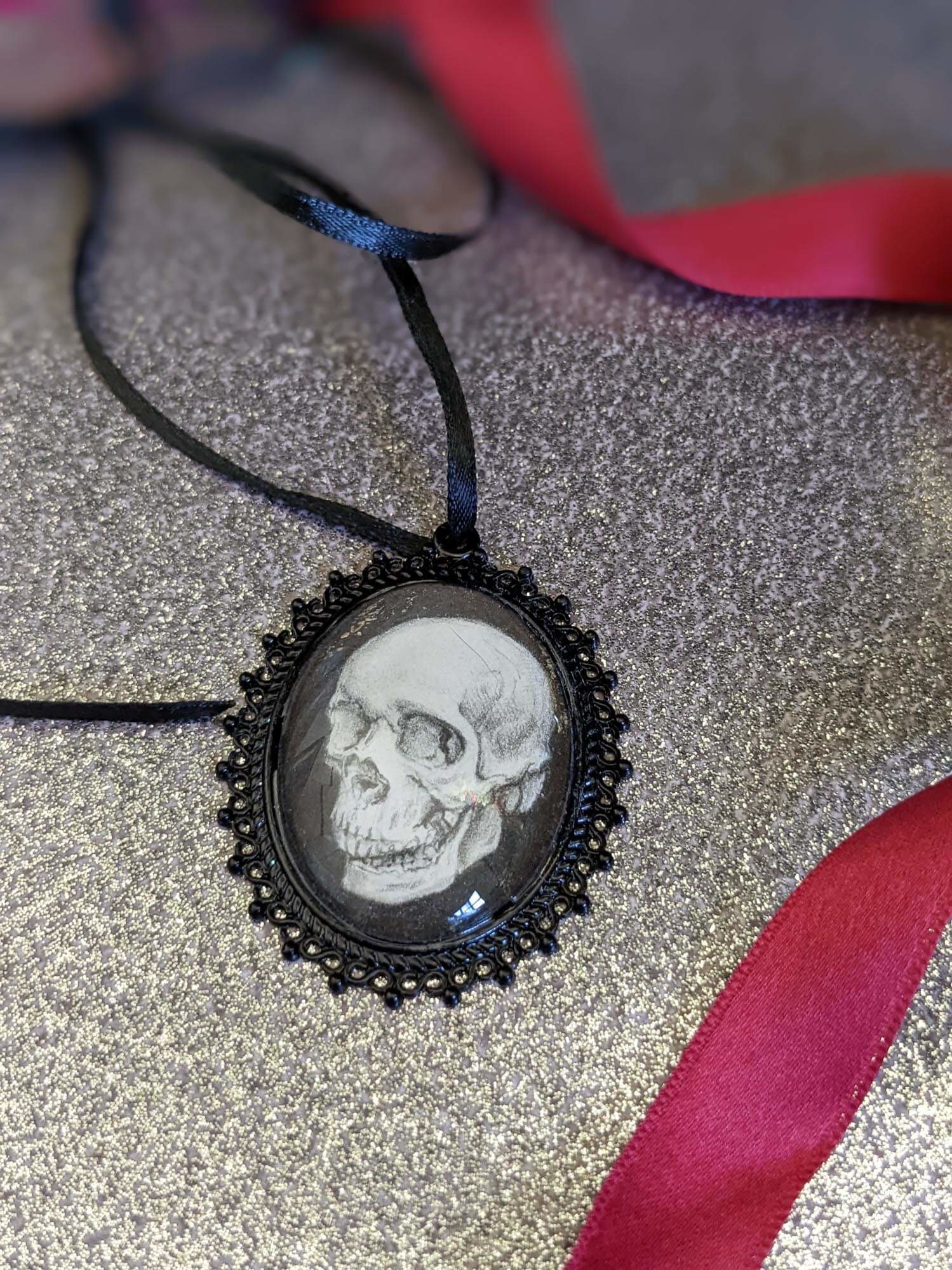 Original hand-drawn graphite on paper, sealed into a black 40x30mm glass & zinc oval frame.