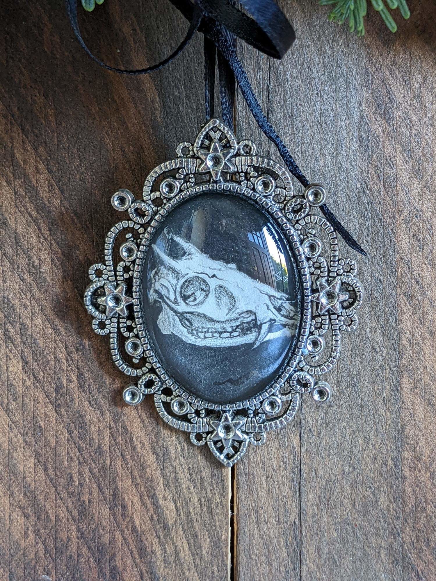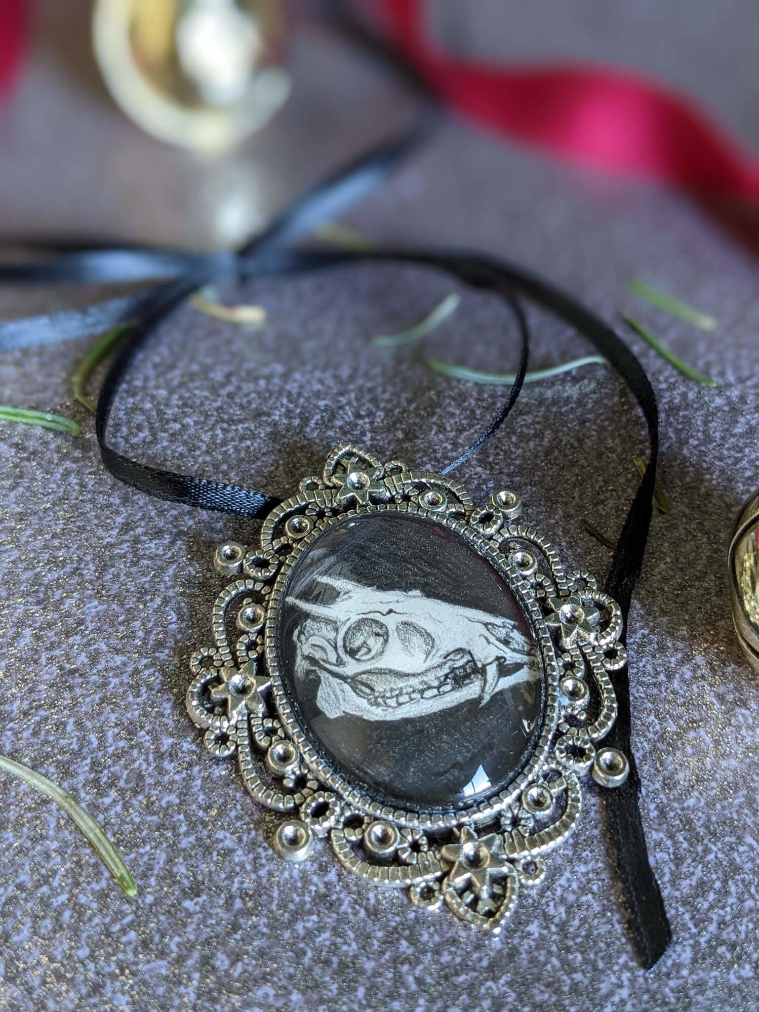Original hand-drawn graphite on paper, sealed into a black 40x30mm glass & zinc oval frame.