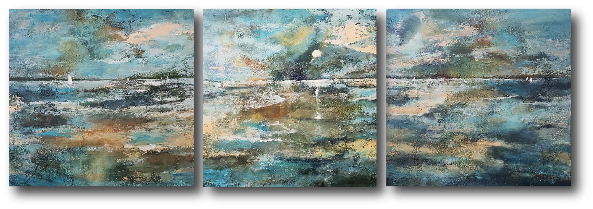 Highly textured triptych on deep, studio wrapped canvas. Pieces can be purchased individually for $850 per piece.