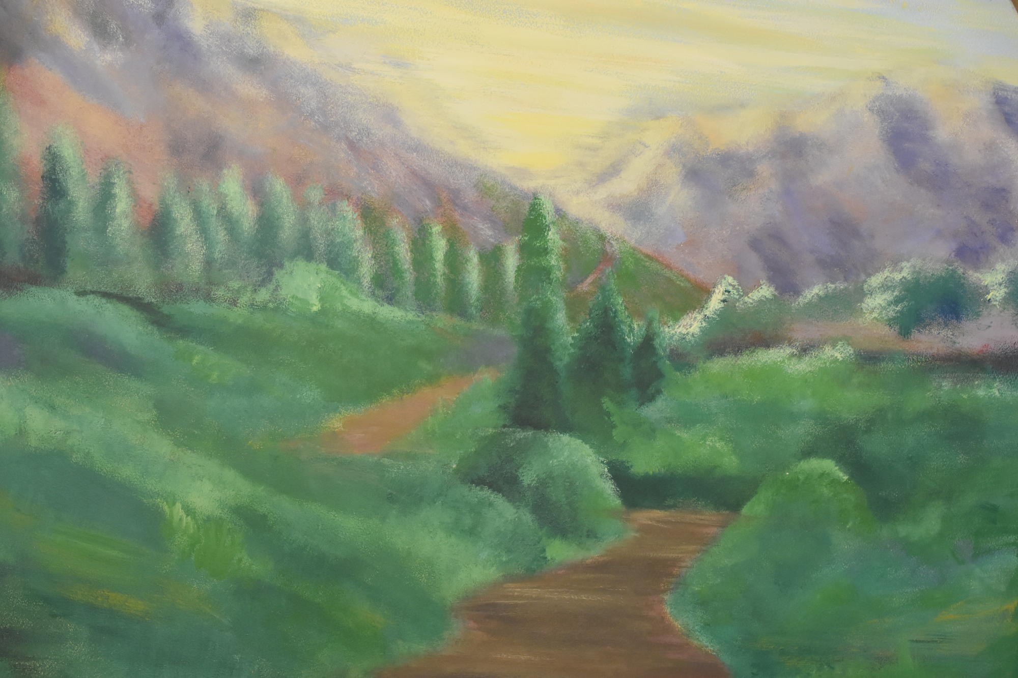 Nancy Bates has lived in Summit County for 40 years. A graduate of Brigham Young University in education with a minor in art, she taught language arts and art at North Summit High School for 20 years. Her evolution into mural-painting began years ago when her school needed a backdrop for an assembly. Not long after, the theater department needed a backdrop for a play, which led to years of creating scenery for theatrical productions. Now retired, Mrs. Bates says that one of the unexpected pleasures of her long teaching career was that she sometimes had the opportunity to teach three generations within the same family, having the children, and later the grandchildren of her original high school students turn up in her classroom.