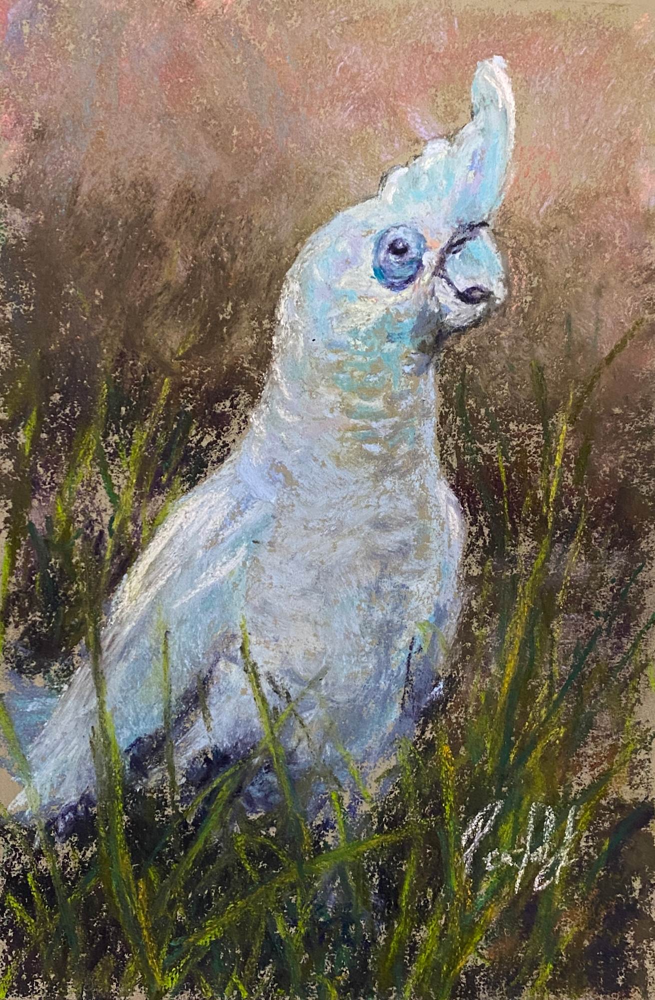 A place is often distinguished by its animals. This Corella was sitting on the ground looking at me while I was going for a walk. It was an overcast day and quite wet. It was incredibly cheeky and was enjoying engaging with me and my friend.
