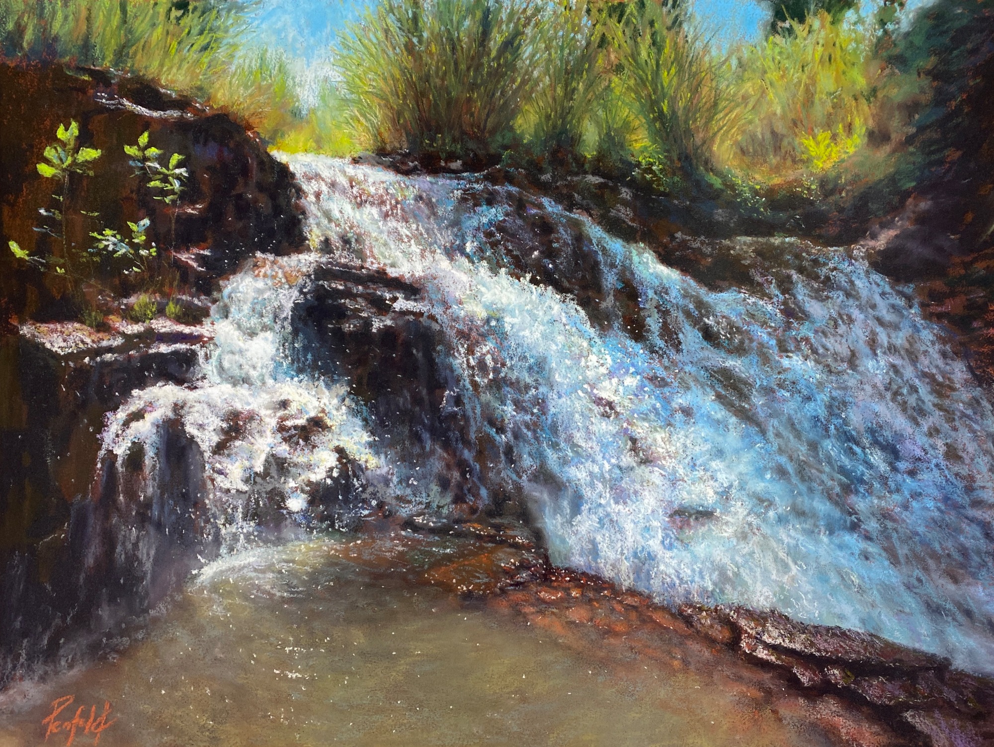 This work is based on a waterfall in the Litchfield National Park in the Northern Territory of Australia. Water is such a precious commodity in Australia being the driest inhabited continent. With higher temperatures due to climate change it is predicted that rainfall and cyclones will become much more intense and therefore much destructive and droughts more common. This means the fragile ecosystems in the waterways and landscapes of our National Parks will be impacted and may not be reversible.