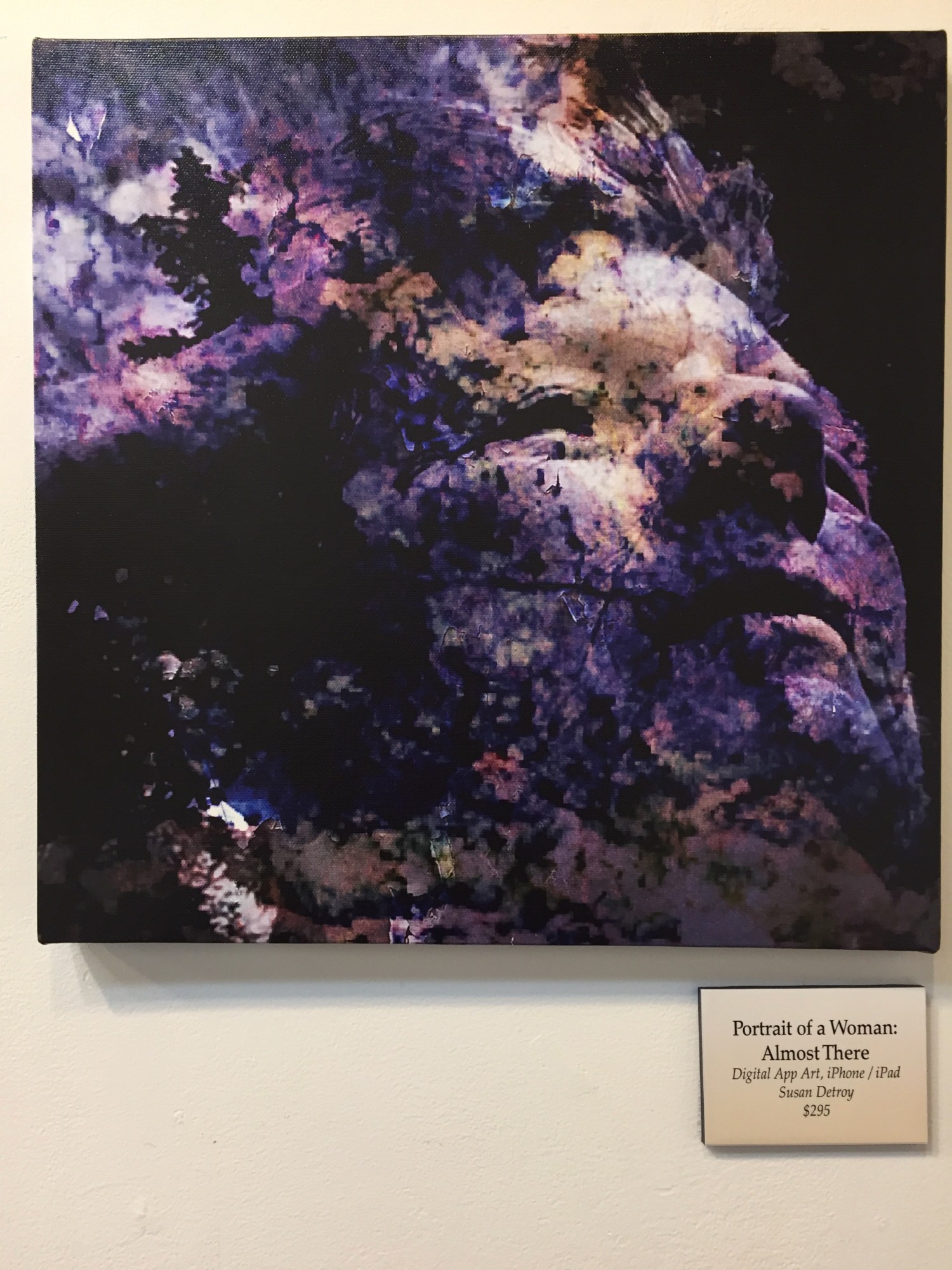 “Almost There ” is one creation in an expansive project that emerged from my personal journey in aging. The project began in 2016 and continues with artworks currently . This piece uses my technique of using my self portrait melded with a landscape of a beloved bird refuge where I find serenity and solace. “Portrait of a Woman” is a n extensive project encompassing artworks in multiple media. The origin of the project grew from my personal journey in aging. Pieces incorporate my face with natural elements. After six years now the pieces in this collection include canvas, metal and paper prints as well as a few small experimentations.