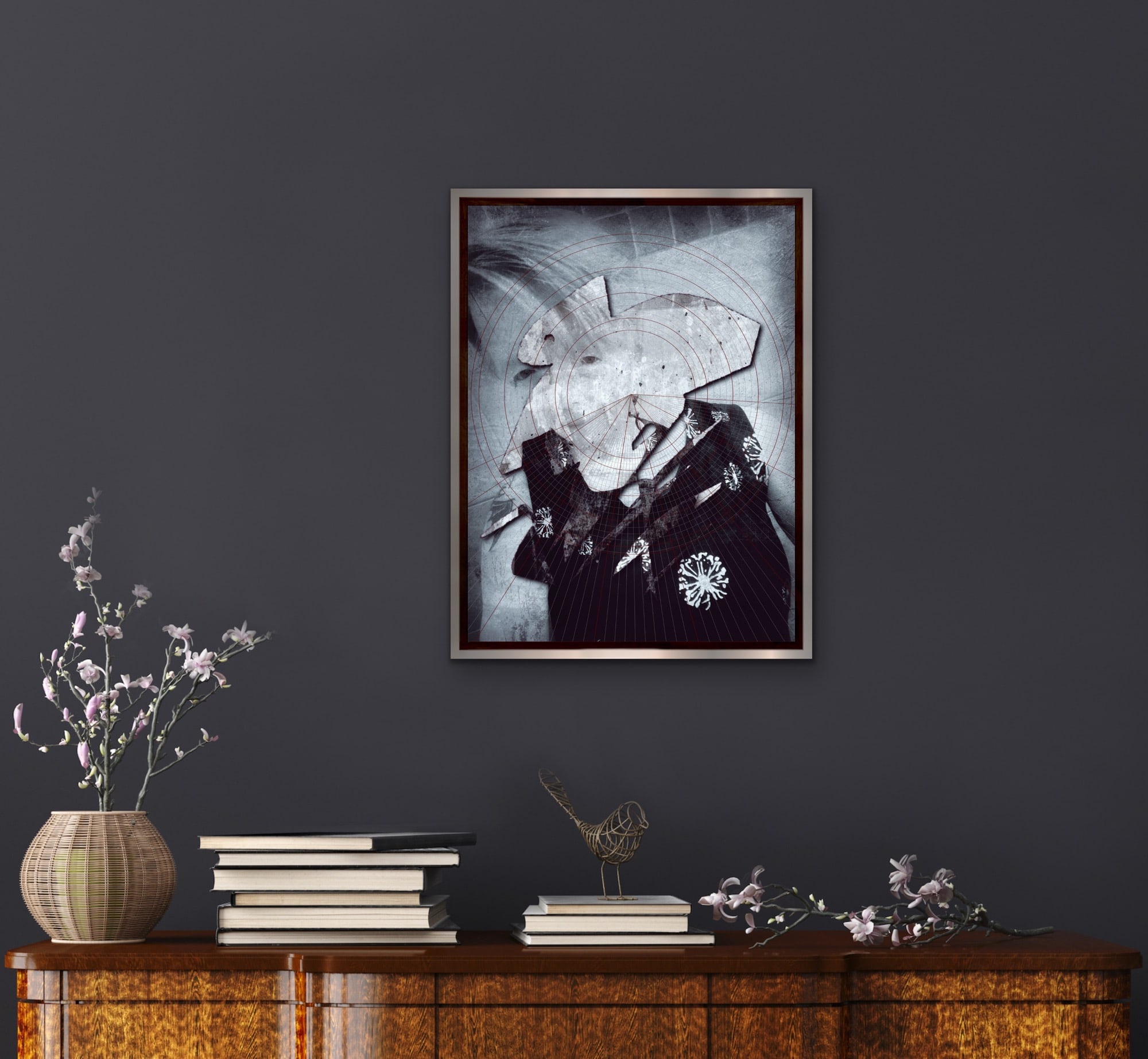 “Am I The Target” evolves from the work created in early 2025, partly in response to the governmental changes in the US. She also takes her place in the oeuvre of works developed from my ten year self portrait series in the catalogue of images within the “Portrait of a Woman “ project and is part of a group created at the beginning of 2025. The pieces reflect the imapct of living in the US as the political climate disrupts our daily lives. Created as digital image using my aging face, the piece conveys the female aging experience in all its glory, strength and despair. The work in the project is available as canvas, paper, metal, collaged assemblages and mixed media pieces. The imagery travels along a range of quiet and contemplative to bold and loud. Unframed Print available $350. Framed print $600