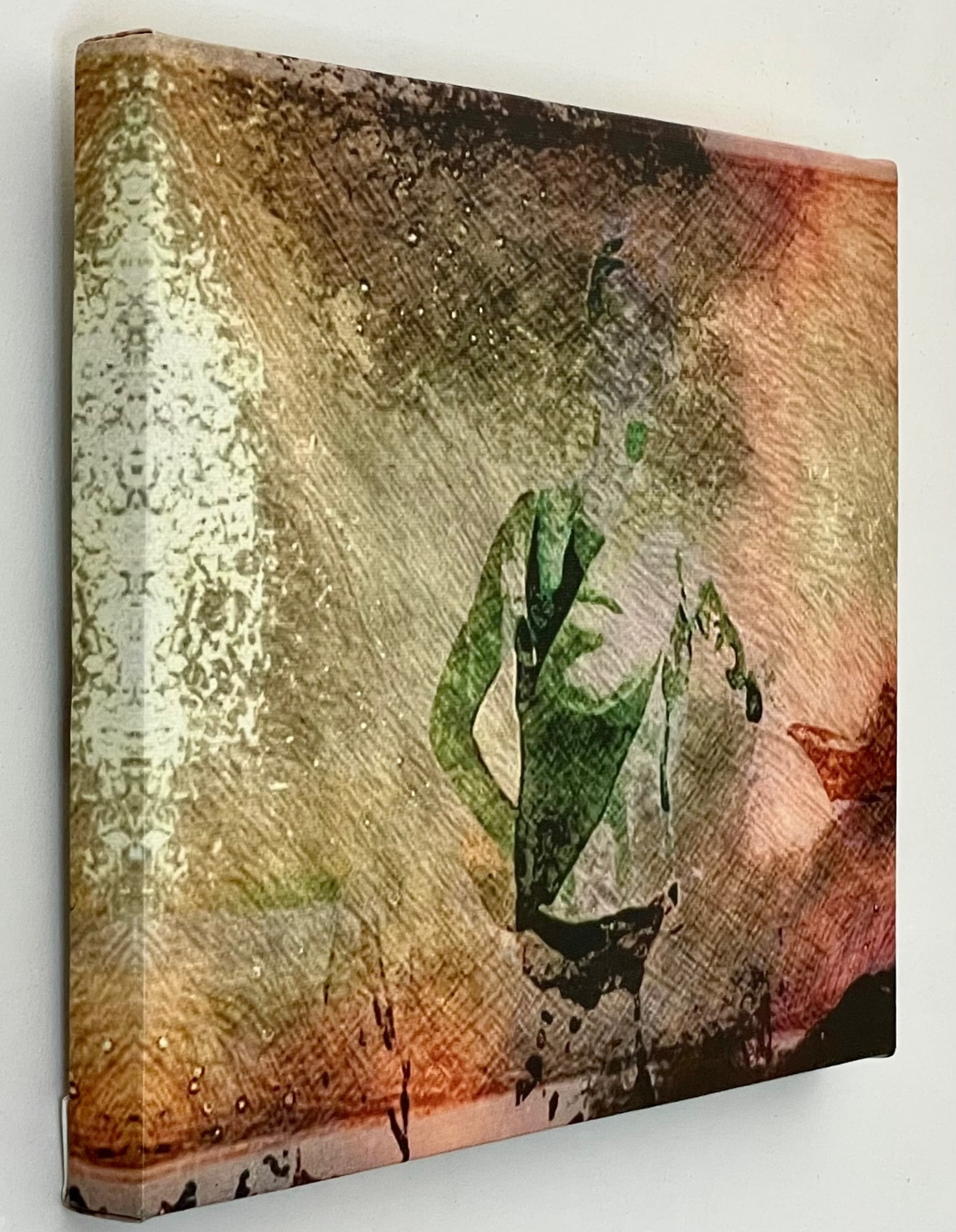“Born of Fire” is one creation in an expansive project that emerged from my personal journey in aging. As an early piece it includes earlier images of myself. In addition to the themes of the larger project, "Woman on Fire" included themes of change, emergence and unknown futures.