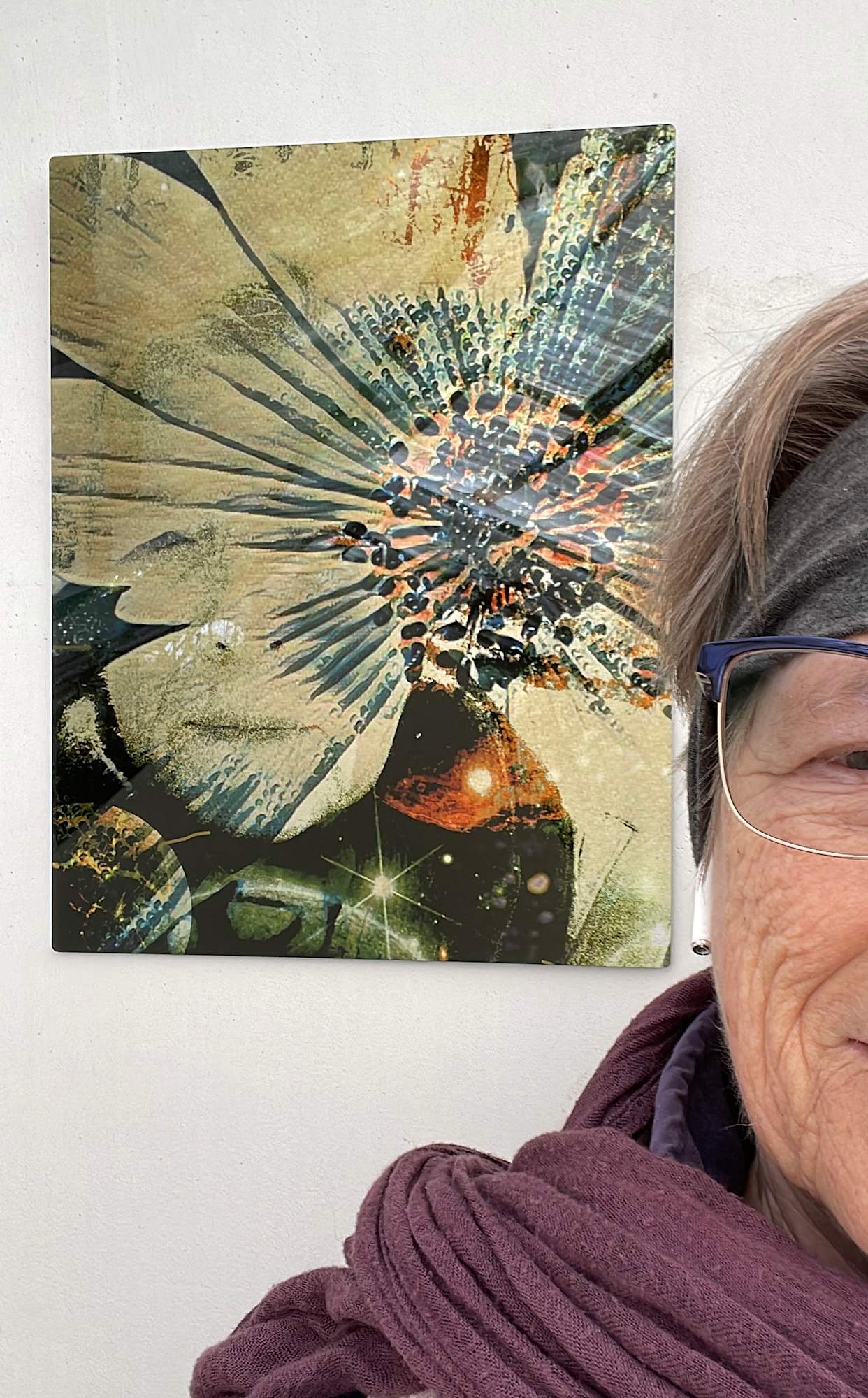 Portrait of a Woman” began in 2015, the largest undertaking in my art career it is an extensive venture encompassing artworks in multiple media. The origin of the project grew from my personal journey in aging, using my own face. Pieces incorporate my face with natural elements. After six years now the pieces in this collection include canvas, metal and paper prints as well as a few small experimentations.