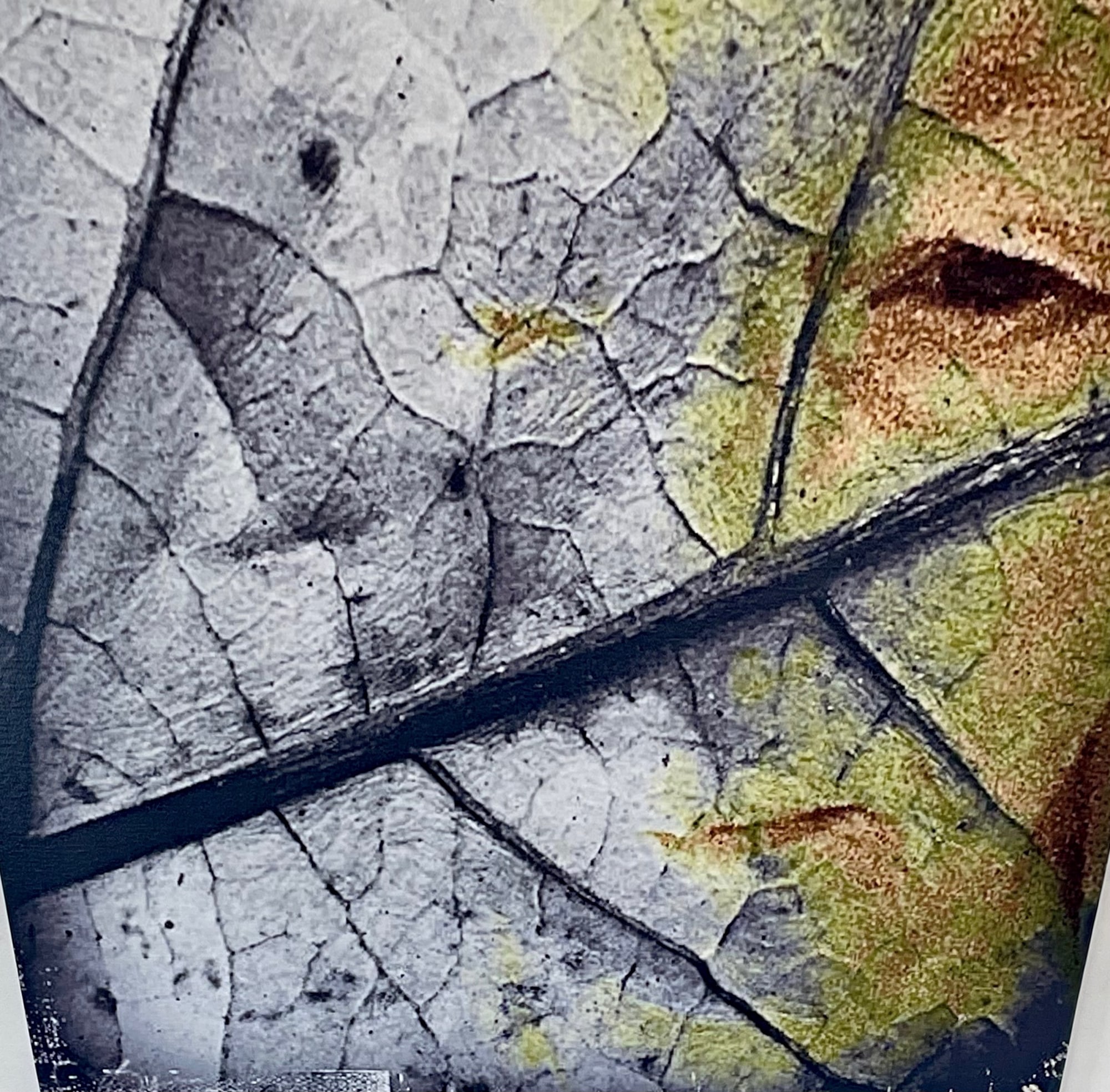 “Leaf Life ” is one creation in my expansive project that emerged from my personal journey in aging. This very large digital to canvas artwork is also in the group of images using leaves as an expression of aging through the metaphor leaves. In addition to sharing the themes in the larger "Portrait of a Woman" project, "Leaving" is an expression of life's transition.