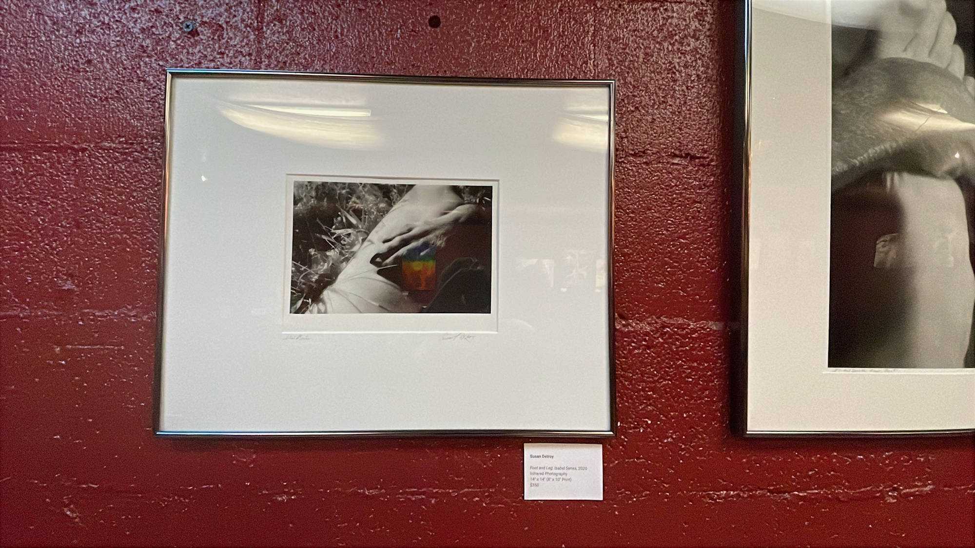 "Paw and Leg" is an infrared, handprinted, toned photograph. Creating art using my beloved doberman, Isabel was a delight for me and sometimes for her. For twelve years Isabel was my main subject. I learned to use infrared film at the U of Oregon and loved the eery look and luminous quality. This print is one of many in the series.