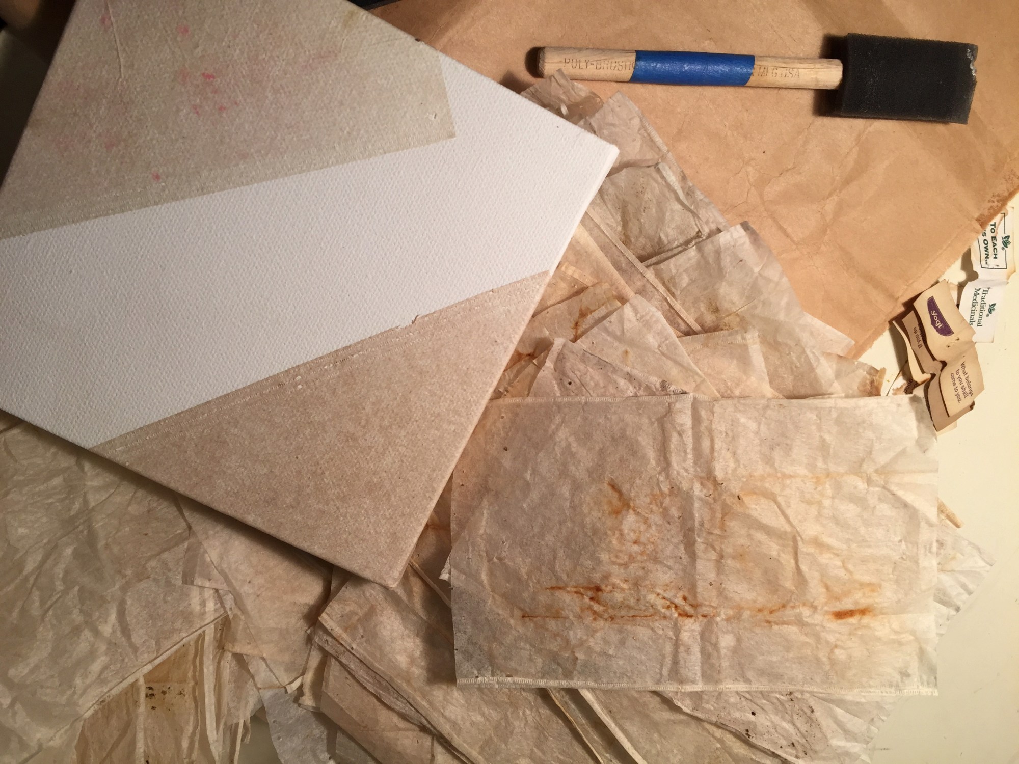 The image as well as all the pieces in the “Evolution” series, is inspired by the "Portrait of a Woman" project. I create the small pieces using recycled teabag papers along with digital images, watercolor and ink.