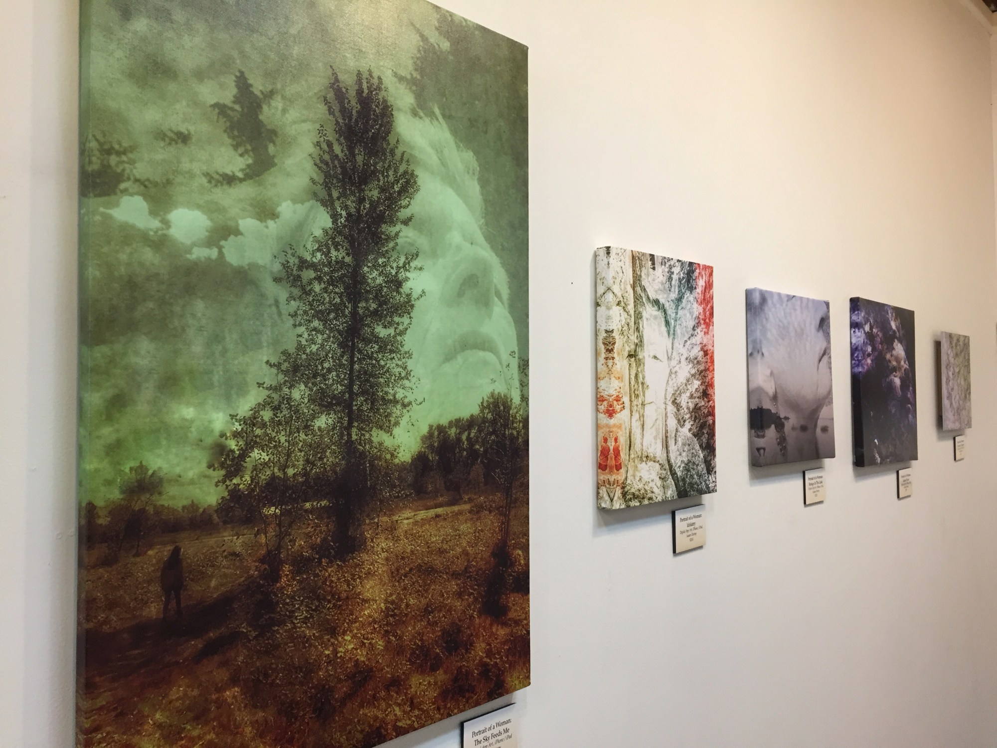 "The Sky Feeds Me ” is one creation in an expansive project that emerged from my personal journey in aging. In addition to the project themes, her creation is guided by earth love and fascination with sky and clouds The project began in 2016 and continues with artworks currently . This piece uses my technique of using my self portrait melded with a landscape of a beloved bird refuge where I find serenity and solace. “Portrait of a Woman” is a n extensive project encompassing artworks in multiple media. The origin of the project grew from my personal journey in aging. Pieces incorporate my face with natural elements. After six years now the pieces in this collection include canvas, metal and paper prints as well as a few small experimentations. This large canvas was slightly damaged in a recent transport. I am offering the piece reduced plus shipping.