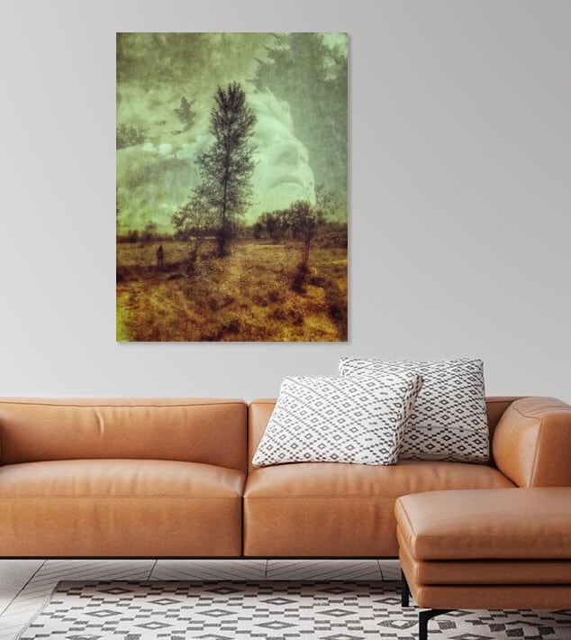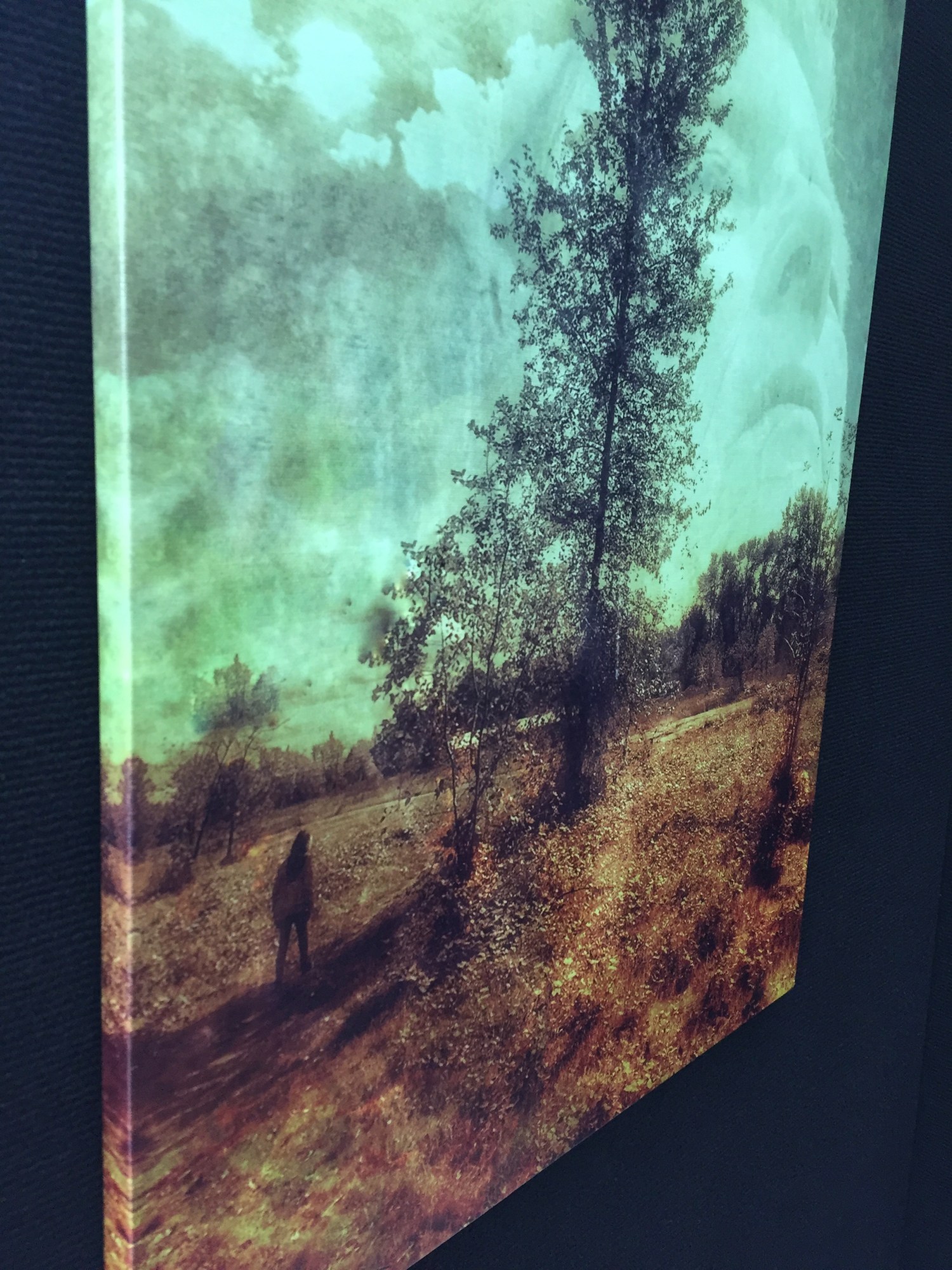 After six years now the pieces in this collection include canvas, metal and paper prints as well as a few small experimentations. This large canvas was slightly damaged in a recent transport. I am offering the piece reduced  plus shipping.