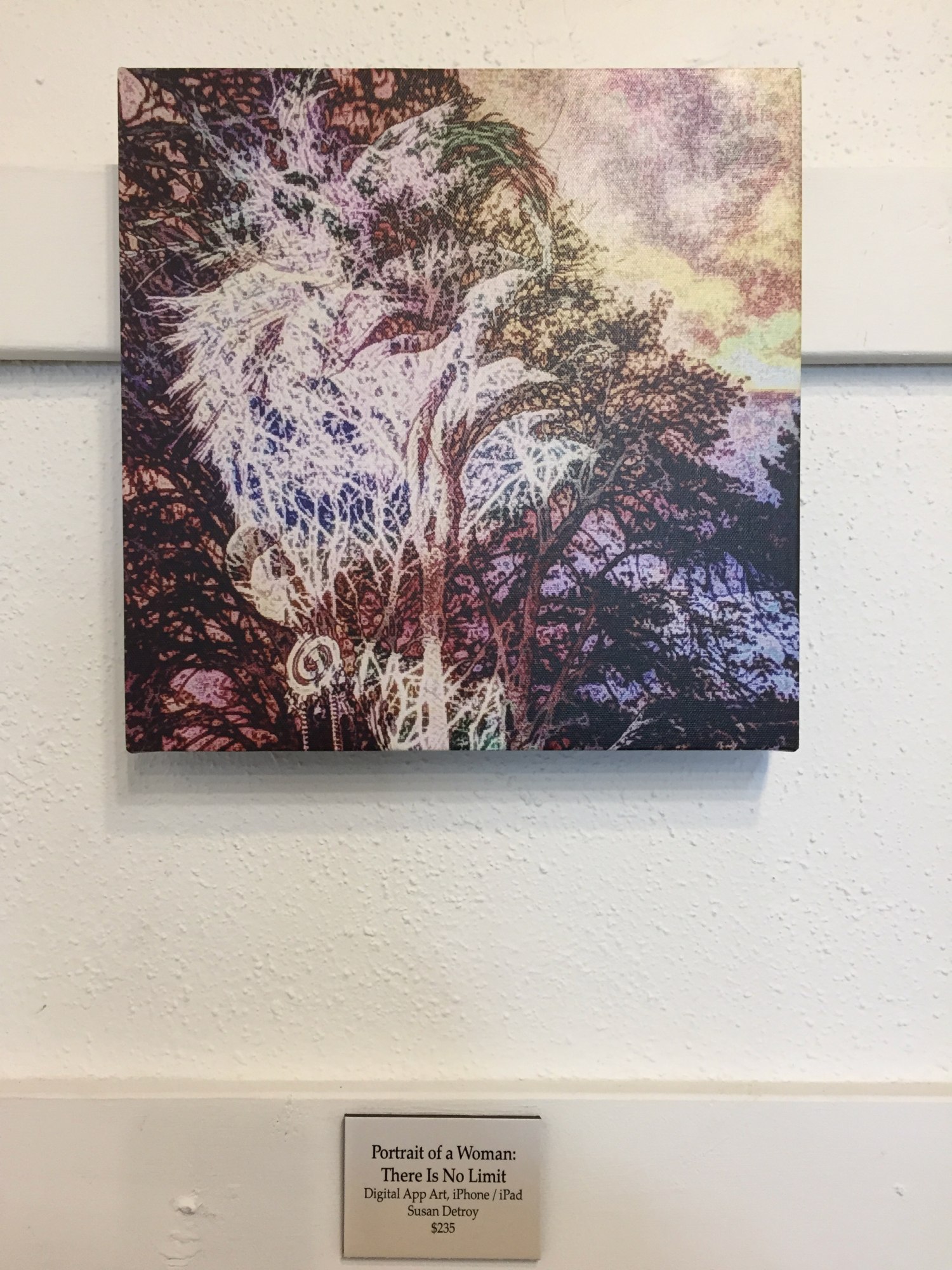 The “Portrait of a Woman” series, is produced digitally with iPhone and iPad. Unflinchingly, I capture my face as well as surrounding elements - trees, water, plants and structures. I turn my iPhone toward myself, as aging woman blending my image with the natural environment. I explore a myriad of approaches melding the captured world with my own image coupling my likeness with titles, poetry, quotes, personal stories and beliefs. Each fused image builds new meanings transforming to offer a greater message.