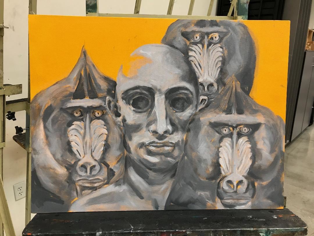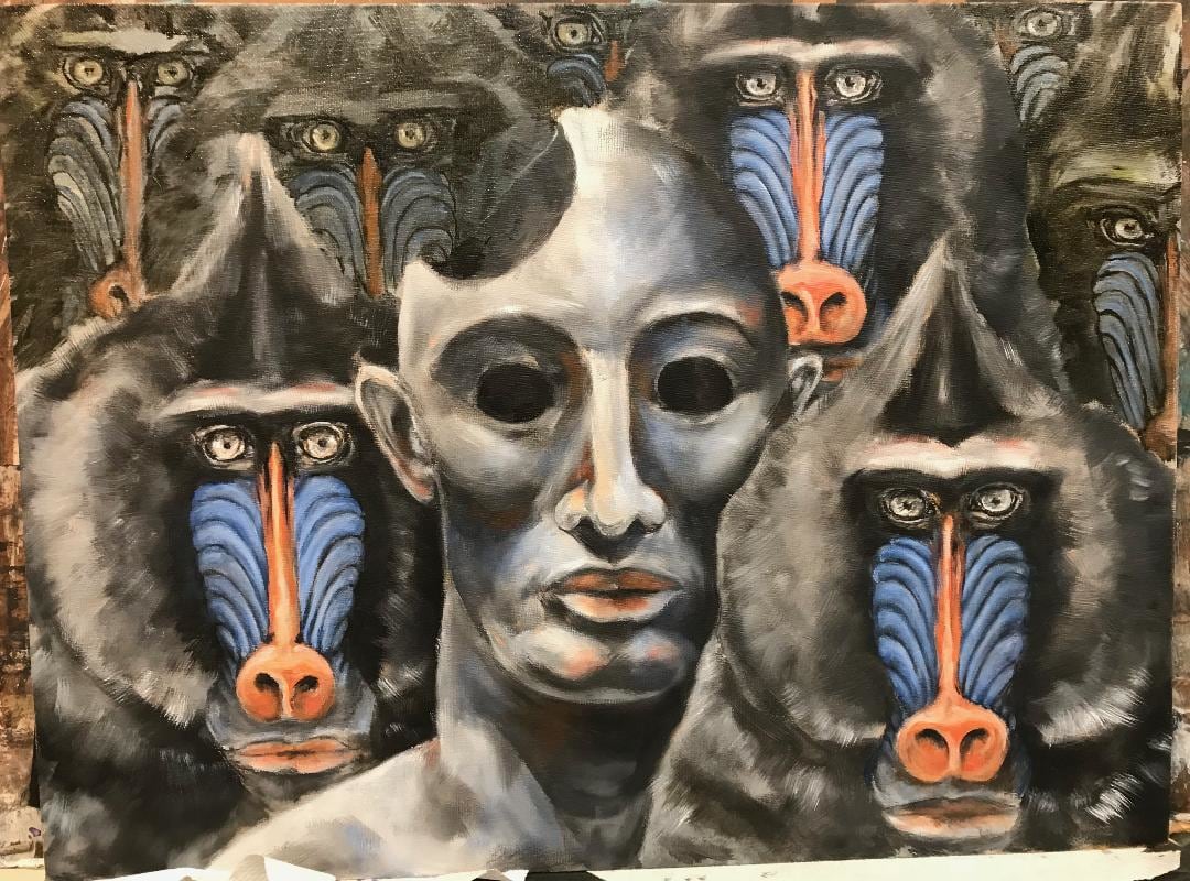 I painted, recorded and posted this panting in December of 2018. In January of 2019, filming began on Jumanji: The Next Level. The film was released, after advertising with this poster (click on the photo of my painting to see attachment), in December of 2019. I believe Sony Picture stole my idea. What do you think?