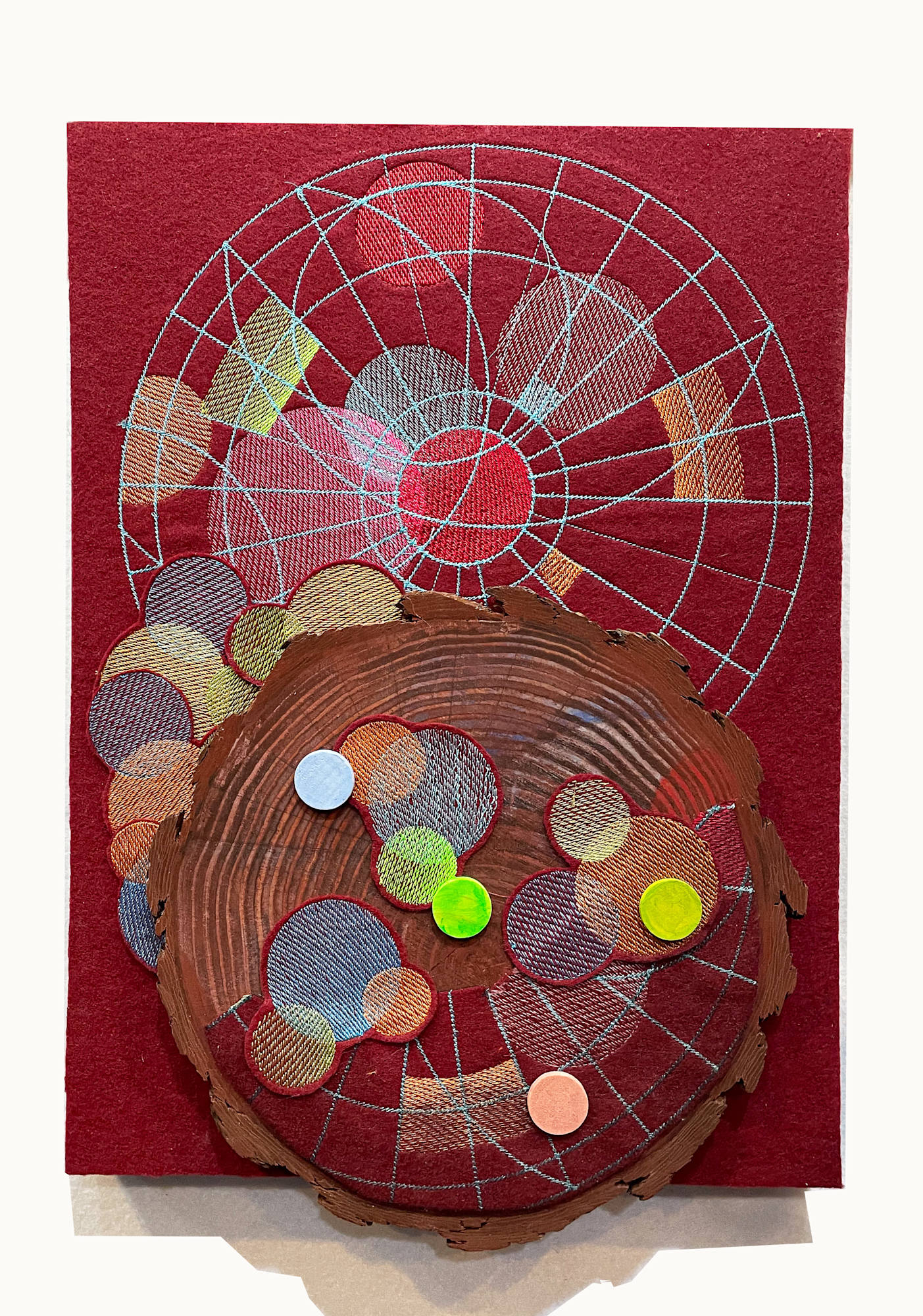 Cleverly dimensional and open to broad interpretation and daydreams. Mapping as an expression of time. A slice of tree rings counts the years.