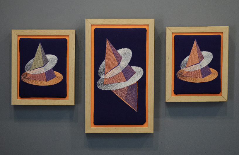 Dynamic pyramids, split, reflected and reassembled into a tryptich!