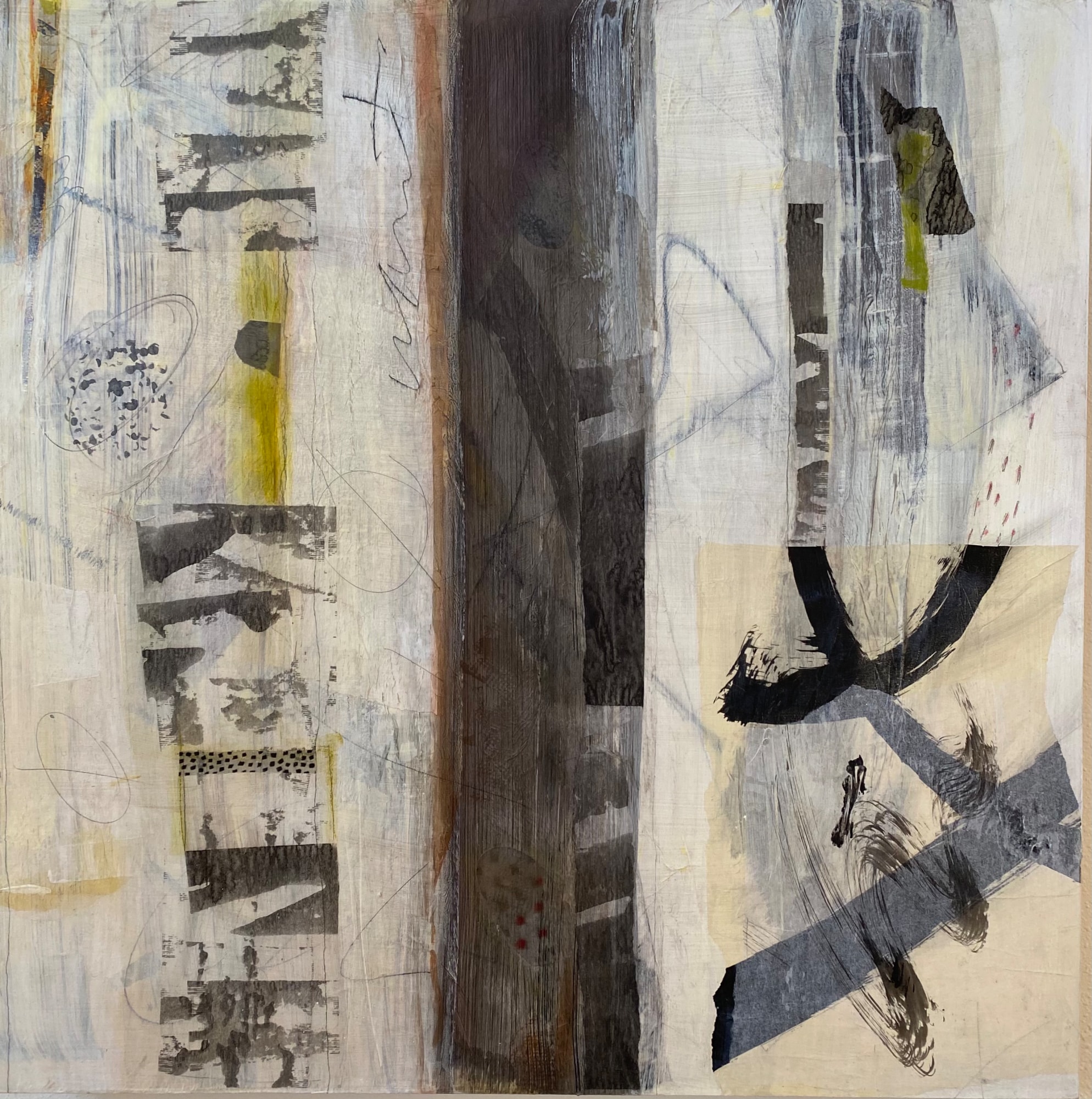This piece is created on a cradled panel with cold wax varnish. It is unframed but could be framed if desired.