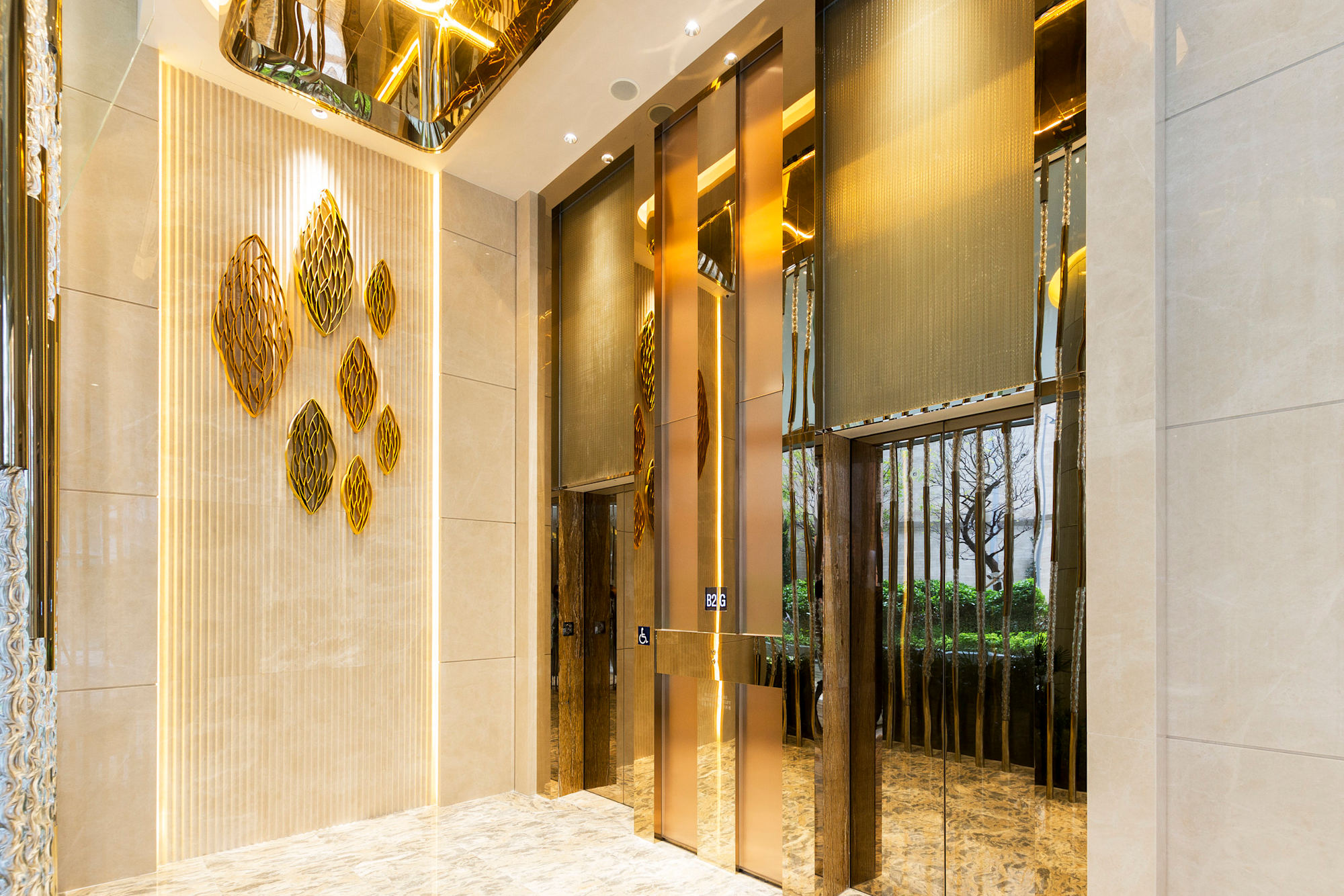 We worked directly with design professionals to accommodate their need for artwork in a new luxury residential property being built in Hong Kong. They commissioned 14 custom PODS ranging in size and color from 18" up to 48" to be installed onto a sawtooth marble facade for the hotel's elevator lobby walls. This collaboration was a rewarding experience that produced a design which combined both of our creative visions and worked with the criteria for their location.