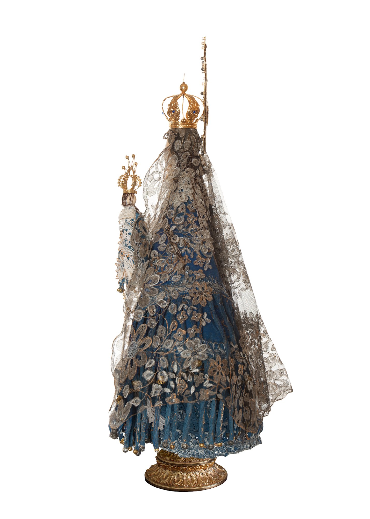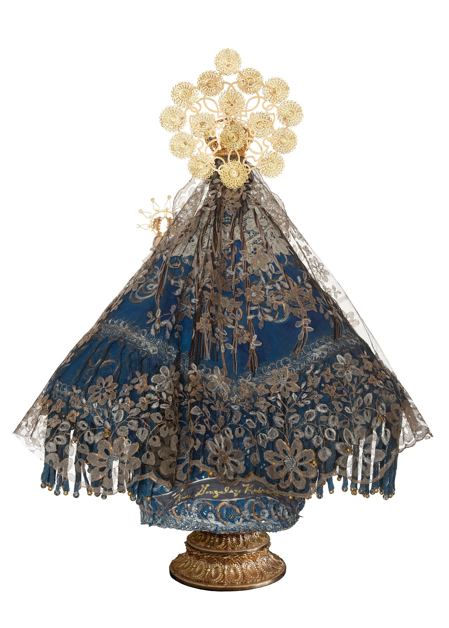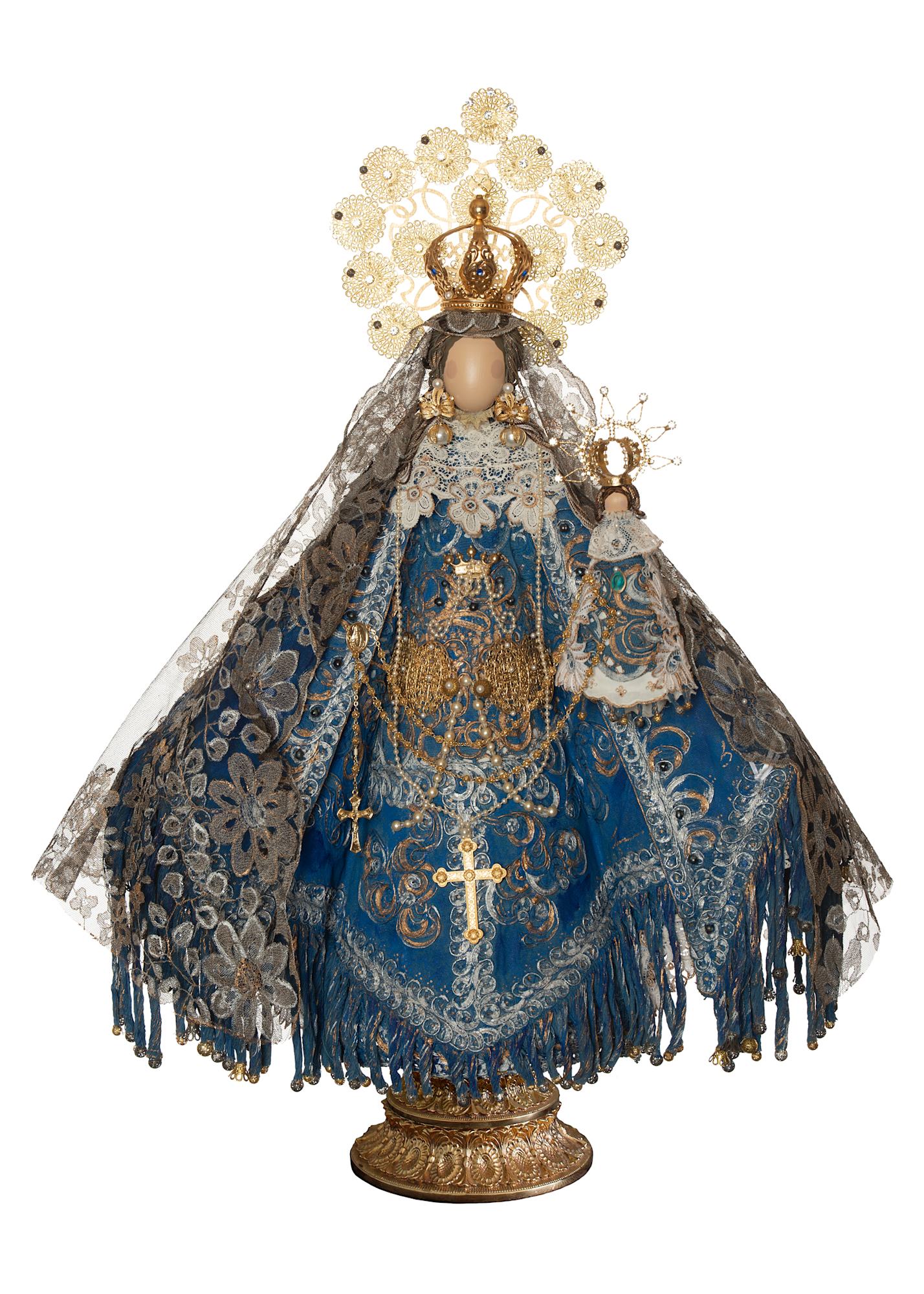 Growing up in Mexico, one of the most devout Christian countries globally, Susana Ramos creates sculptures of the Virgin with sacred repurposed artifacts. Through her faith and the many titles and versions of the Madonna, Honold Ramos recreates the many faces of the Virgin every day. In her studio, she stores thousands of modern, antique, and ancient textiles from around the world and with stones and crowns she creates relics worthy of being a channel of prayers and good intentions.